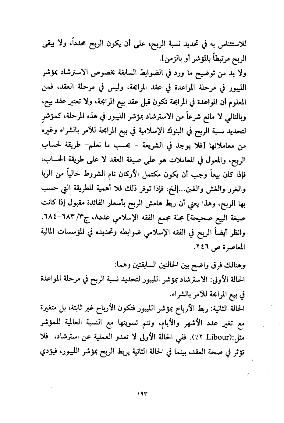 الحالة الثانية: ربط الأرباح بمؤشر الليبور فتكون الأرباح غير ثابتة، بل متغيرة مع تغير عدد الأشهر والأيام، وتتم تسويتها مع النسبة العالمية للمؤشر مثل: ( Libour 2%) . ففي الحالة الأولى لا تعدو العملية عن استرشاد، فلا تؤثر في صحة العقد، بينما في الحالة الثانية يربط الربح