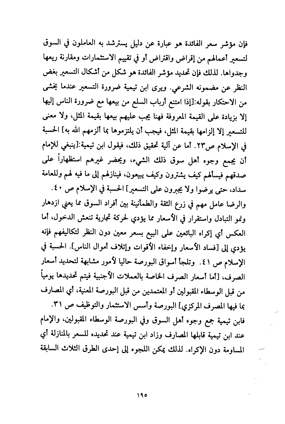 فابن تيمية جمع وجوه أهل السوق وفي البورصة الوسطاء المقبولين، والإمام عند ابن تيمية قابلها المصارف وزاد ابن تيمية عند تحديده للسعر بالمنازلة أي المساومة دون الإكراه. لذلك يمكن اللجوء إلى إحدى الطرق الثلاث السابقة