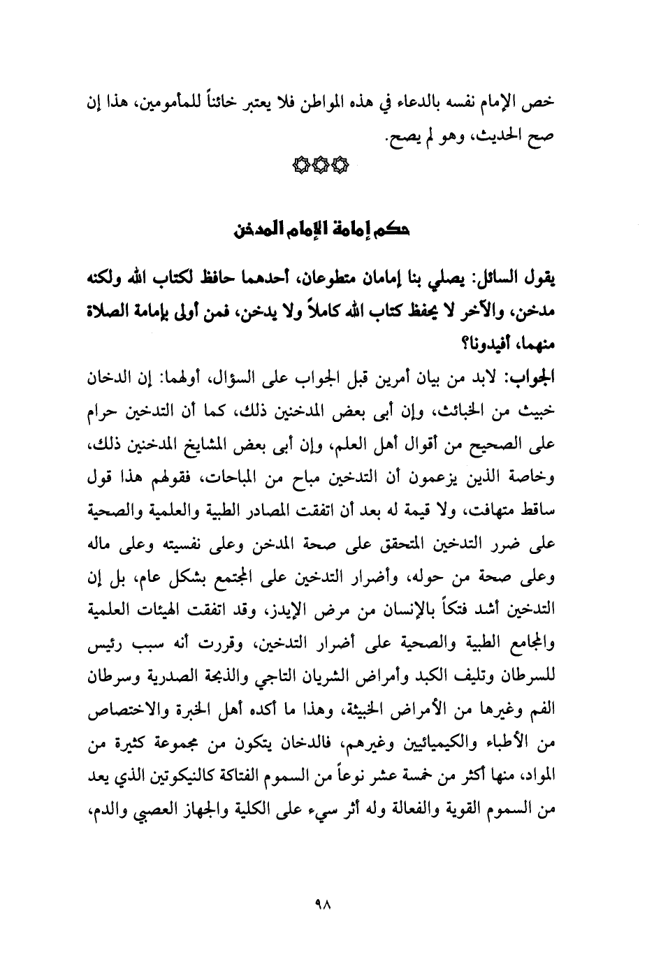 حكم إمامة الإمام المدخن