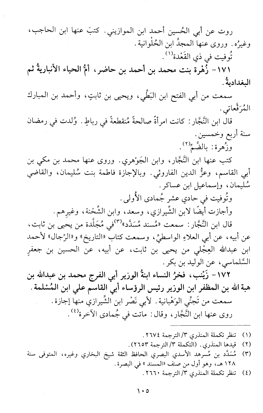 171 - زُهرة بنتُ مُحَمَّد بْن أَحْمَد بْن حاضر، أمُّ الحياء الأنباريةُ ثمّ البغدادية. [المتوفى: 633 هـ]