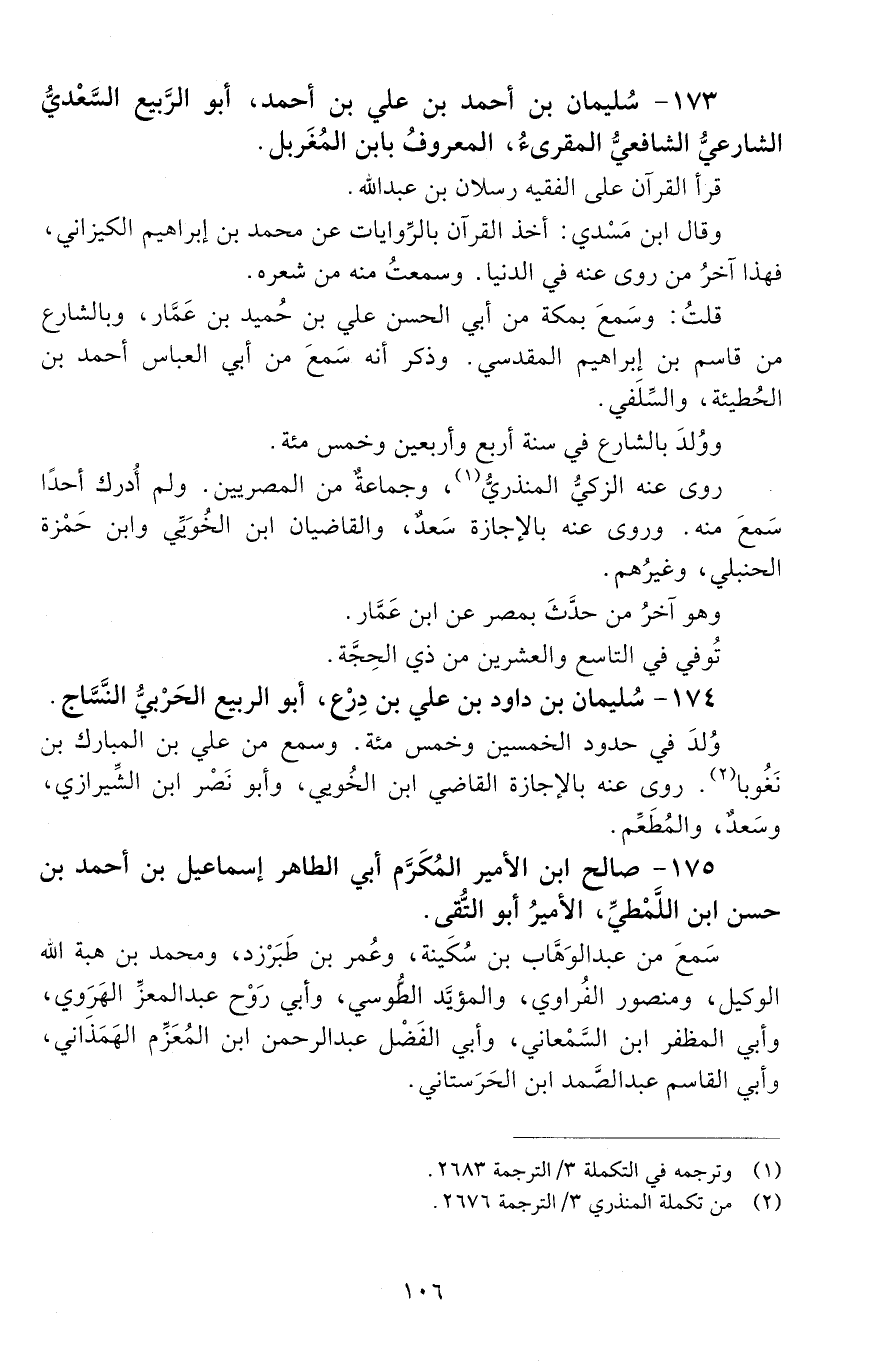 173 - سُلَيْمَان بْن أَحْمَد بْن عَلِيّ بْن أَحْمَد، أَبُو الرَّبيع السَّعْديّ الشارعي الشّافعيّ المقرئُ، المعروف بابن المُغَربلِ. [المتوفى: 633 هـ]