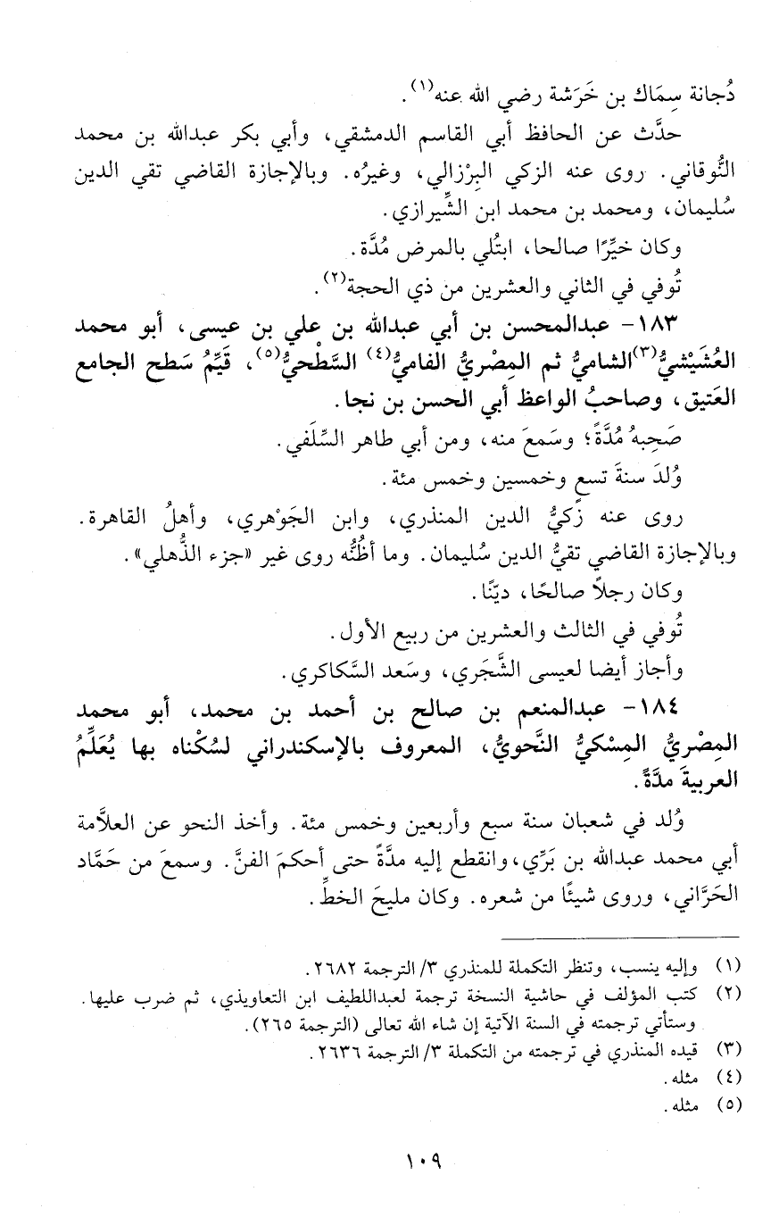 183 - عَبْد المحسن بْن أَبِي عَبْد اللَّه بْن عَلِيّ بْن عيسى، أَبُو مُحَمَّد العُشَيْشيُّ الشاميُّ ثم الْمَصْريّ الفاميُّ السطحيُّ، [المتوفى: 633 هـ]
