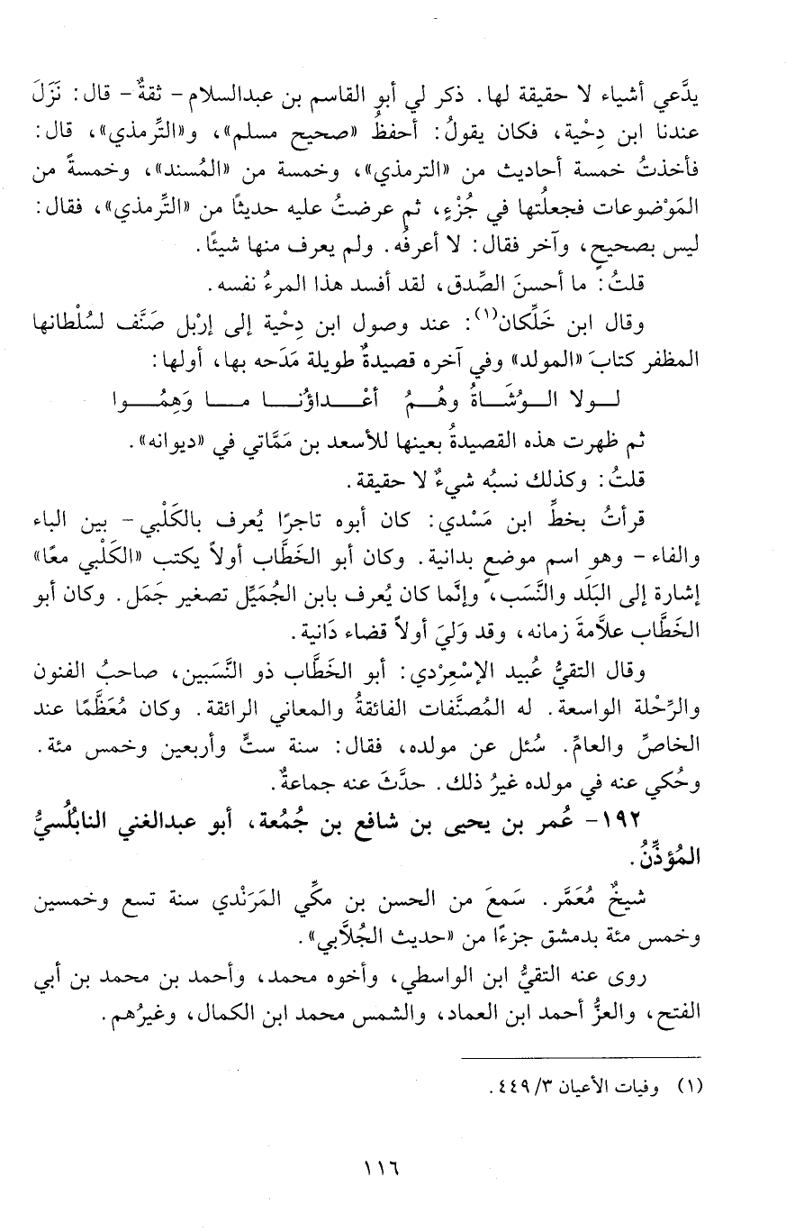 192 - عُمَر بْن يحيى بْن شافع بْن جُمعة. أَبُو عَبْد الغنيّ النابُلُسي المُؤَذِّنُ. [المتوفى: 633 هـ]