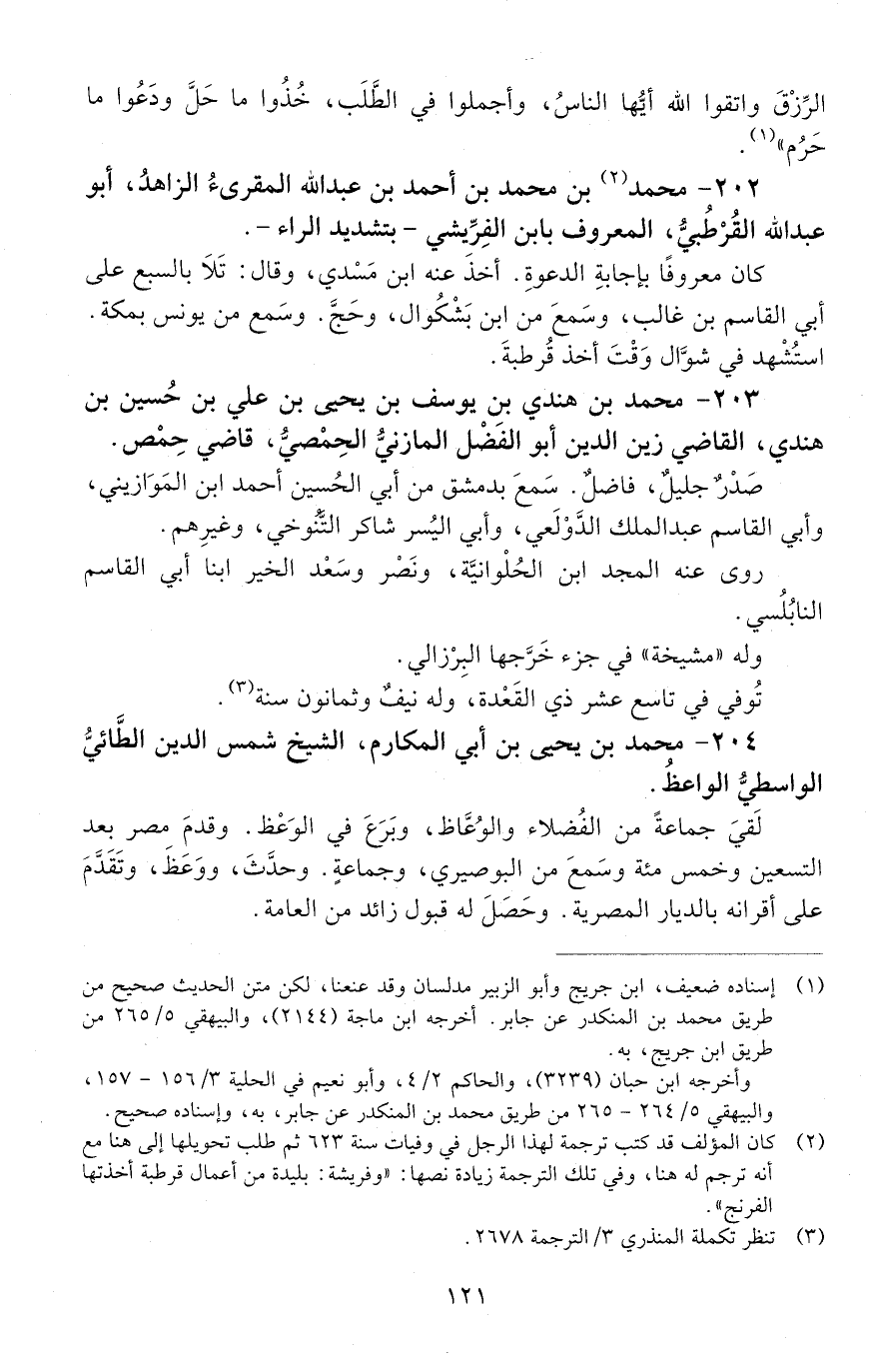 203 - مُحَمَّد بْن هنديّ بْن يوسف بْن يحيى بْن عَلِيّ بْن حسين بْن هندي، القاضي زينُ الدّين أَبُو الفضل المازنيُّ الحمصيّ، قاضي حِمْصَ. [المتوفى: 633 هـ]