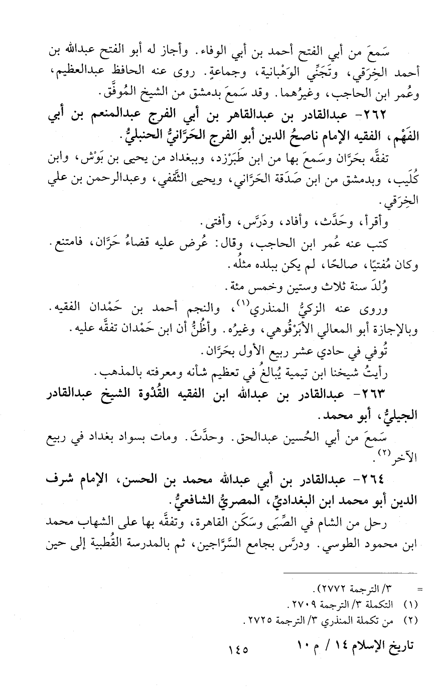 262 - عبدُ القادرِ بْن عَبْد القاهر بْن أَبِي الفَرَج عَبْد المنعم بْن أَبِي الفَهْم، الفقيهُ الإمامُ ناصحُ الدّين أَبُو الفَرَج الحرّانيّ الحنبليُّ. [المتوفى: 634 هـ]