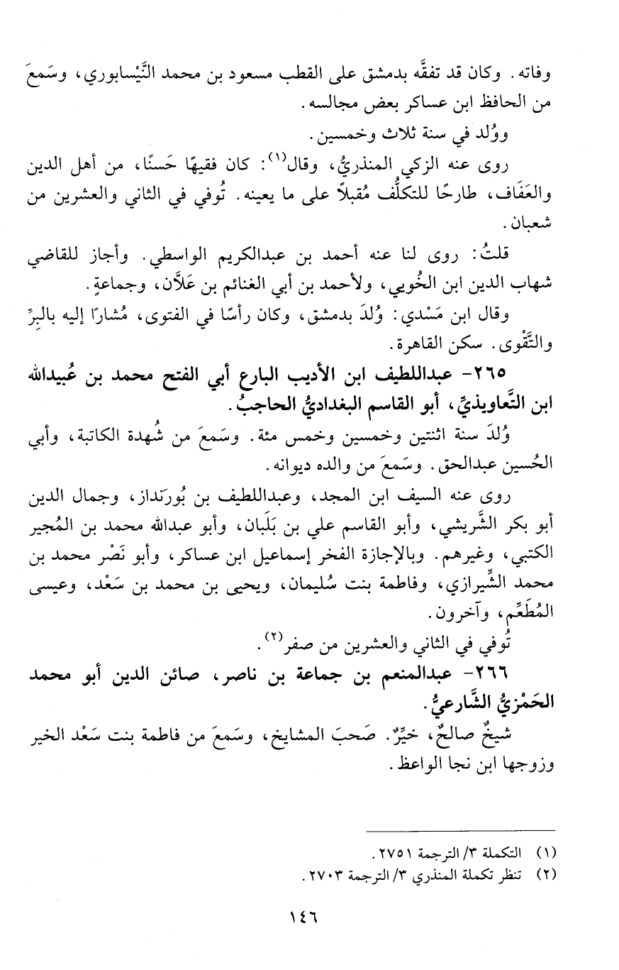 266 - عبدُ المنعم بْن جماعة بْن ناصر، صائنُ الدّين أَبُو مُحَمَّد الحَمْزيُّ الشَّارعيُّ. [المتوفى: 634 هـ]