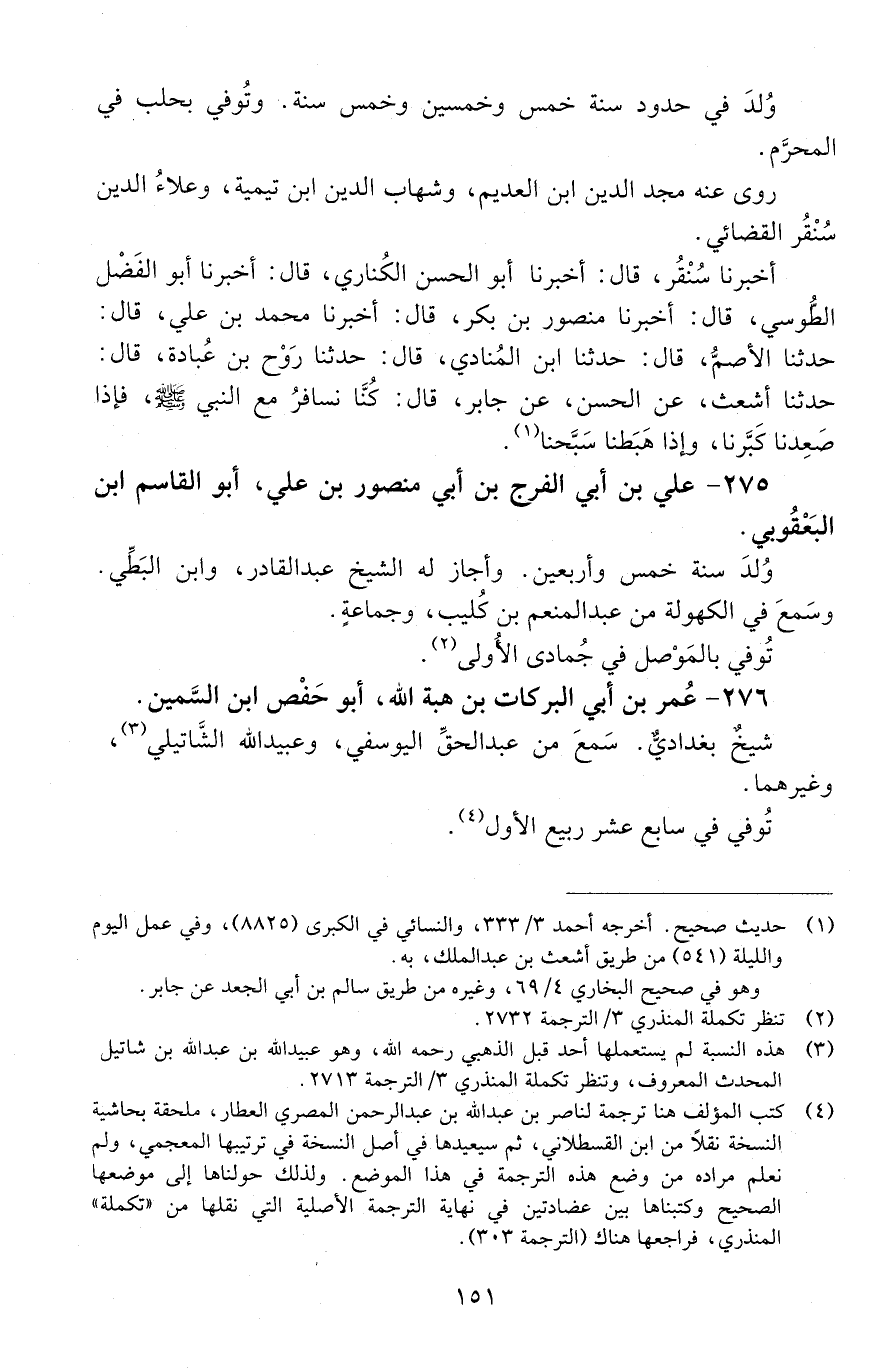 276 - عُمَر بْن أَبِي البركات بْن هبة اللَّه، أَبُو حفص، ابن السَّمين. [المتوفى: 634 هـ]