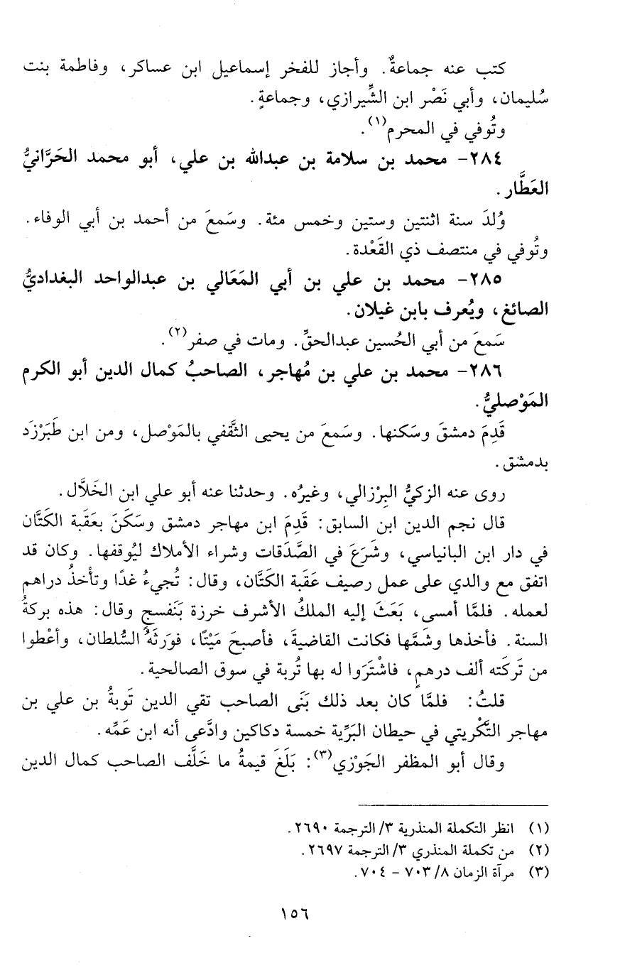 286 - مُحَمَّد بْن عَلِيّ بْن مُهاجر، الصاحب كمال الدين أبو الكرم الموصلي. [المتوفى: 634 هـ]