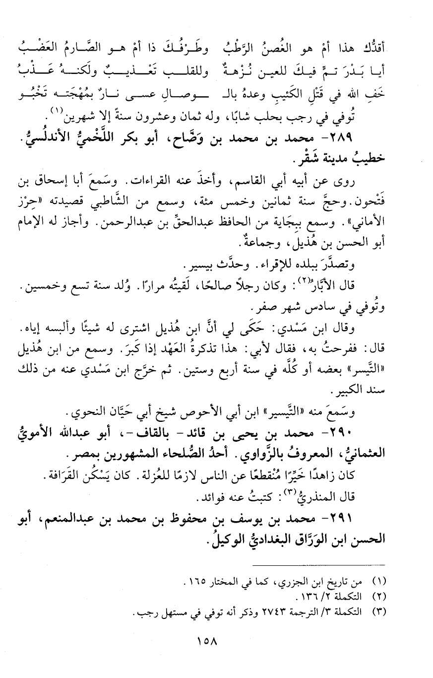 289 - مُحَمَّد بْن مُحَمَّد بْن وضّاح، أَبُو بَكْر اللَّخْميّ الأندلُسيّ. [المتوفى: 634 هـ]