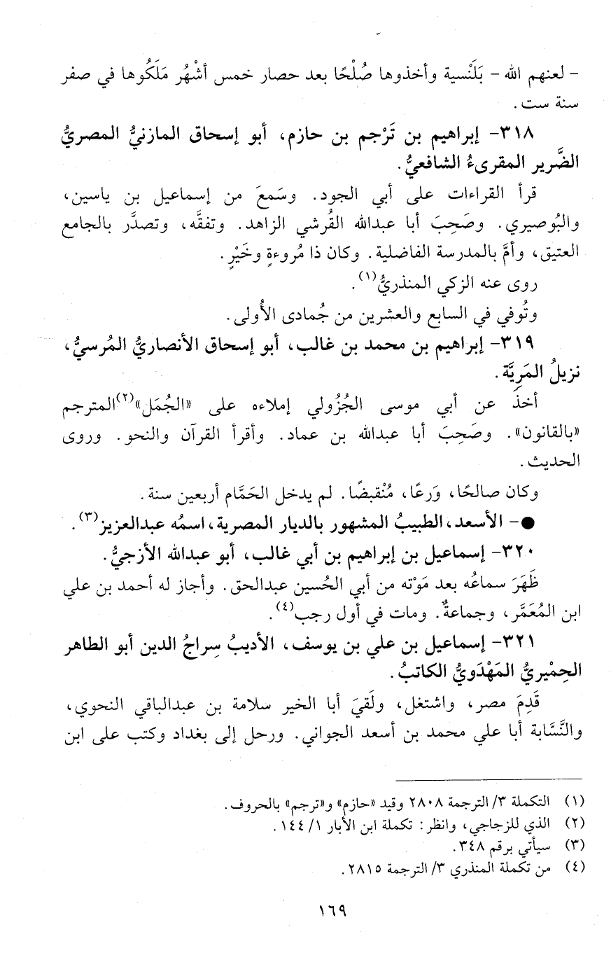 318 - إِبْرَاهِيم بْن تَرْجَم بْن حَازِم، أَبُو إِسْحَاق المازنيُّ الْمَصْريّ الضرير المُقرئ الشّافعيّ. [المتوفى: 635 هـ]