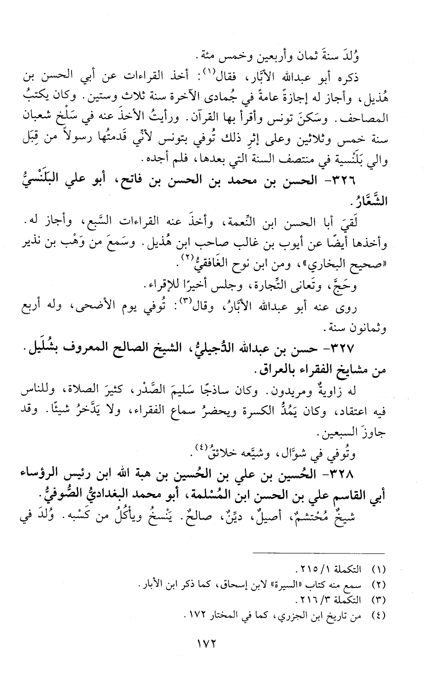 326 - الْحَسَن بْن مُحَمَّد بْن الْحَسَن بْن فاتح، أَبُو عَلِيّ البَلَنْسيُّ الشَّعَّارُ. [المتوفى: 635 هـ]