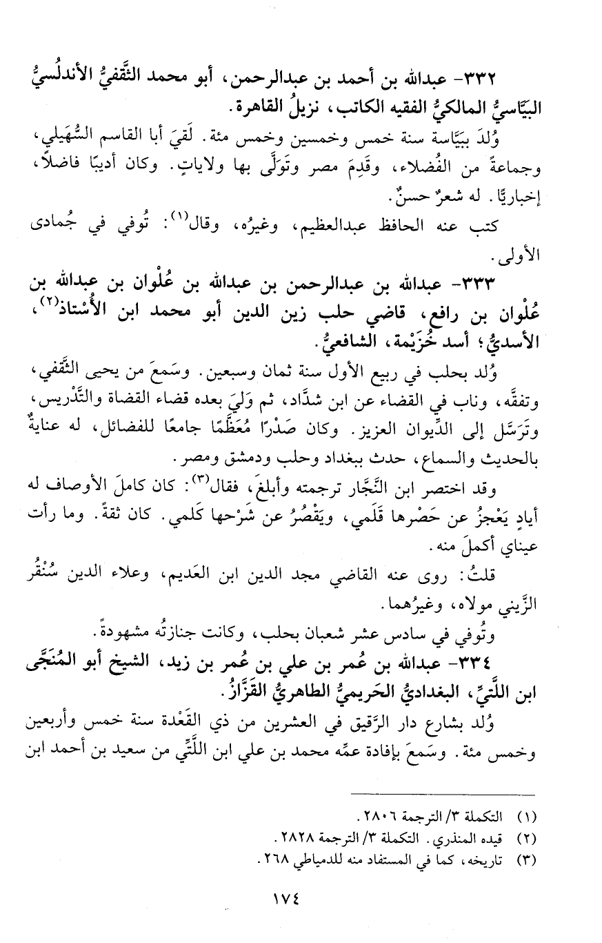 332 - عَبْد اللَّه بْن أَحْمَد بْن عَبْد الرَّحْمَن، أَبُو محمدٍ الثَّقفيّ الأندلُسيُّ البيَّاسيُّ المالكيُّ الفقيهُ الكاتبُ، [المتوفى: 635 هـ]