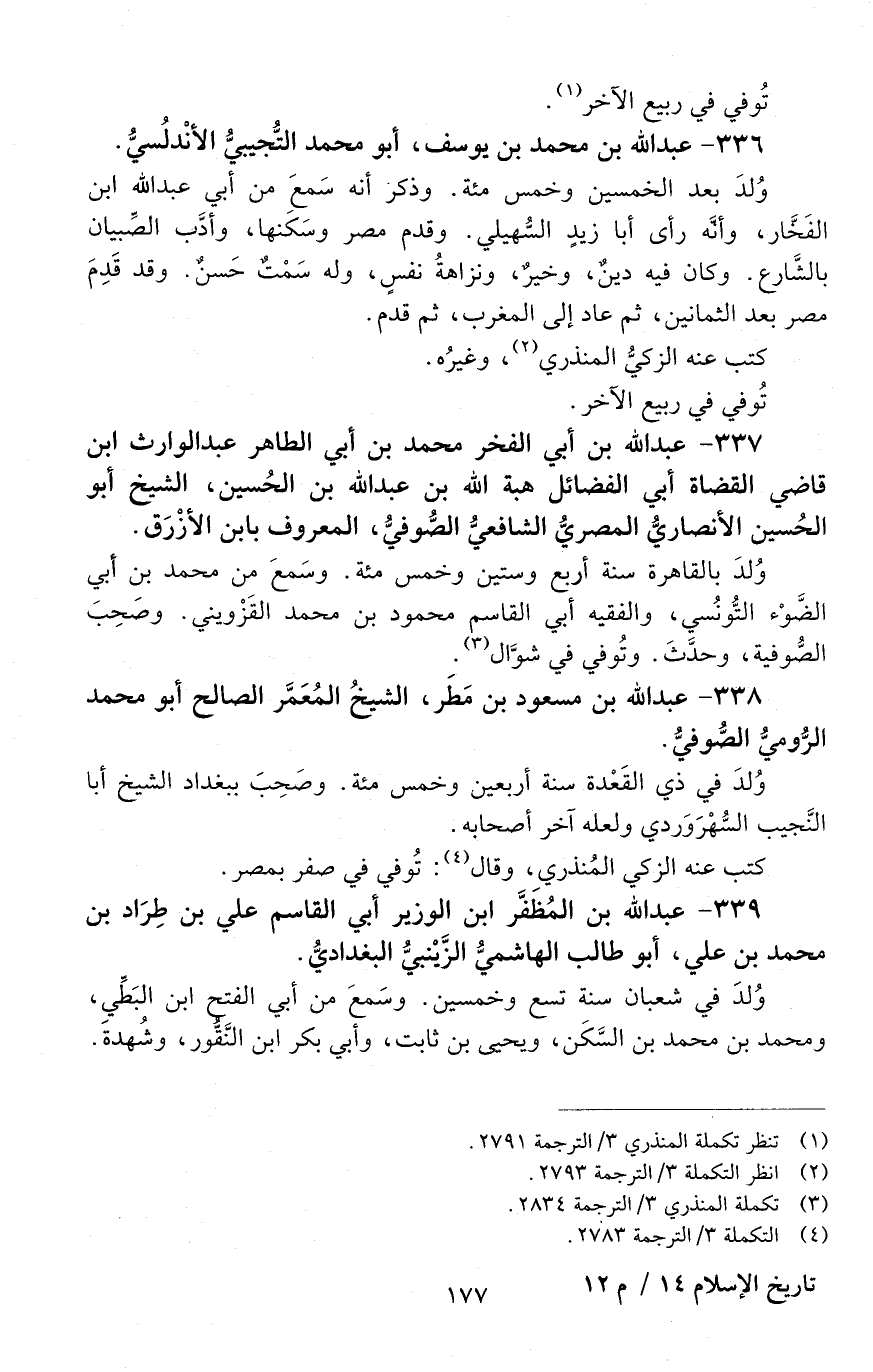 338 - عَبْد اللَّه بْن مَسْعُود بْن مَطَر، الشَّيْخُ المُعَمَّر الصالحُ أَبُو مُحَمَّد الرُّوميُّ الصوفي. [المتوفى: 635 هـ]