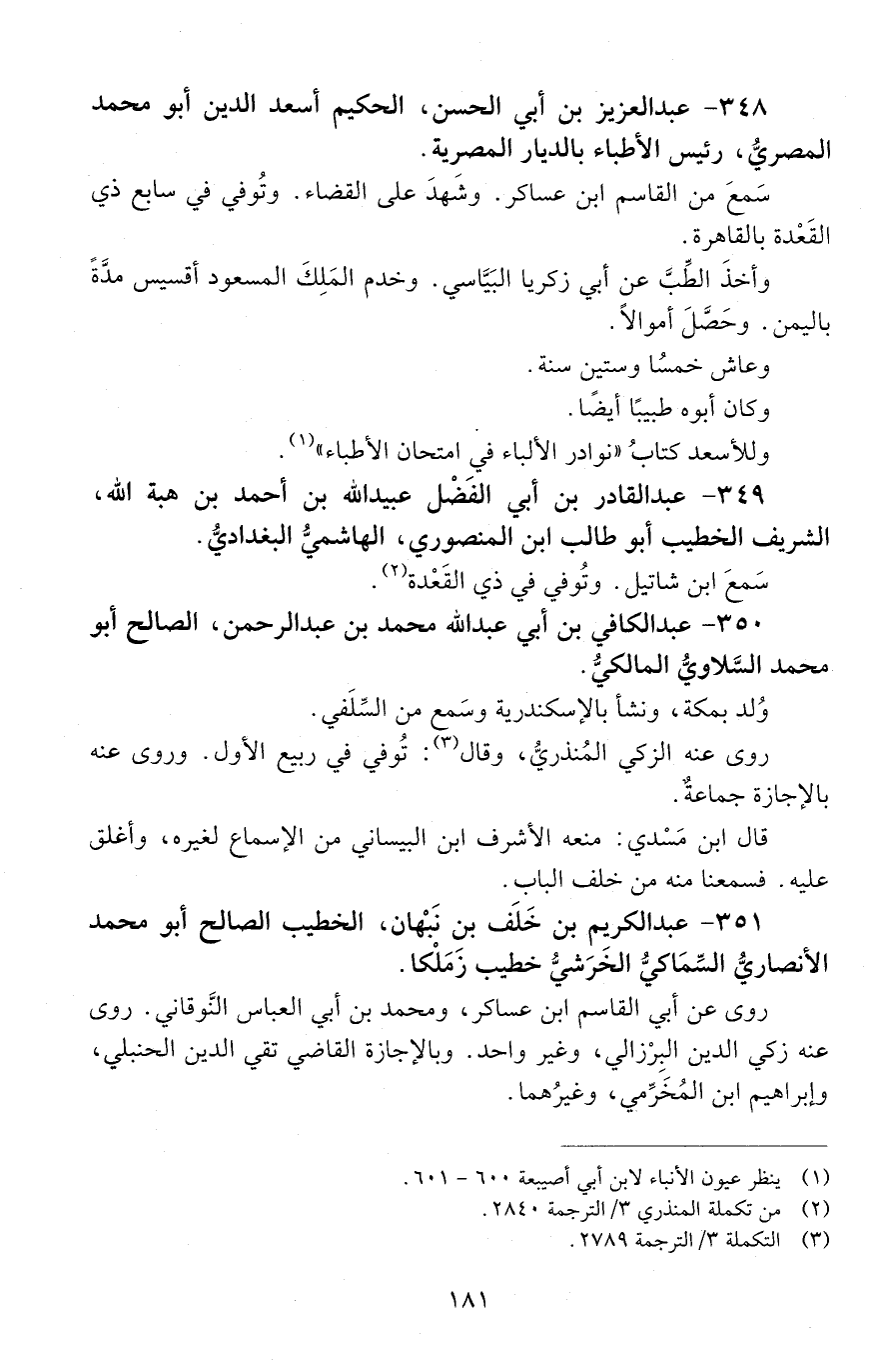 348 - عَبْد العزيز بْن أَبِي الْحَسَن، الحكيمُ أسعدُ الدّين أَبُو مُحَمَّد الْمَصْريّ، رئيسُ الأطباءِ بالدّيار المصرية. [المتوفى: 635 هـ]