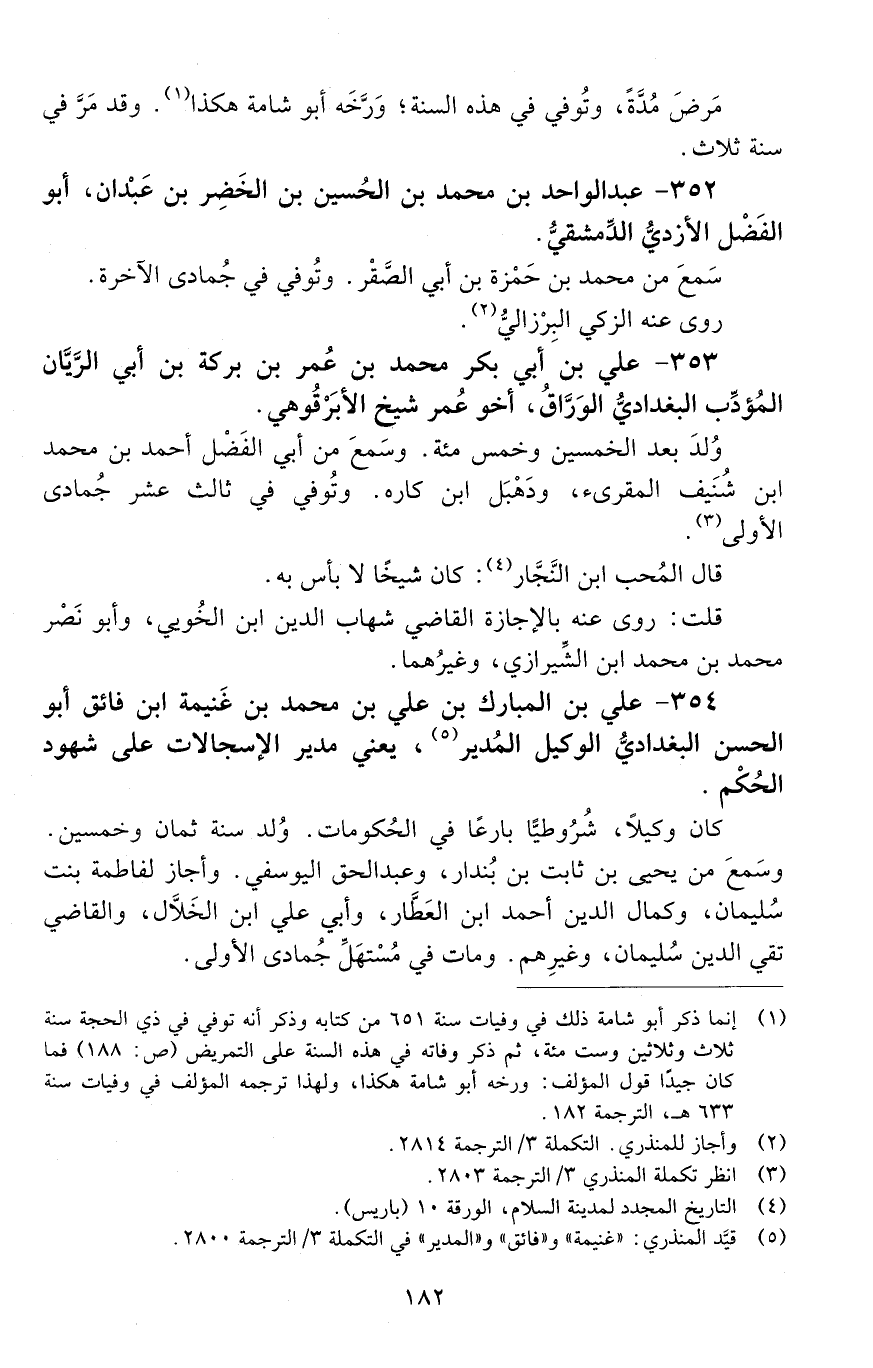 352 - عَبْد الواحد بْن مُحَمَّد بْن الْحُسَيْن بْن الخَضِر بْن عَبْدان، أَبُو الفضلِ الأَزْدِيّ الدّمشقيّ. [المتوفى: 635 هـ]