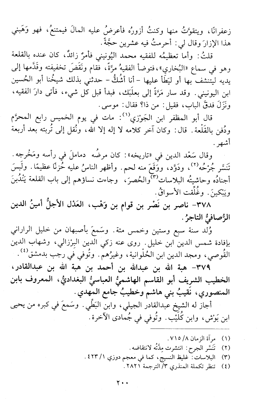 379 - هبة اللَّه بْن عَبْد اللَّه بْن أَحْمَد بْن هبة اللَّه بْن عَبْد القادر، الخطيبُ الشريف أَبُو القاسم الهاشميّ العباسي البغداديّ، المعروف بابن المنصوريّ، [المتوفى: 635 هـ]