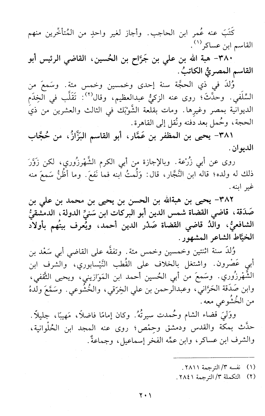 380 - هبةُ اللَّه بْن عَلِيّ بْن جَرَّاح بْن الْحُسَيْن، القاضي الرئيسُ أَبُو القاسم الْمَصْريّ الكاتبُ. [المتوفى: 635 هـ]