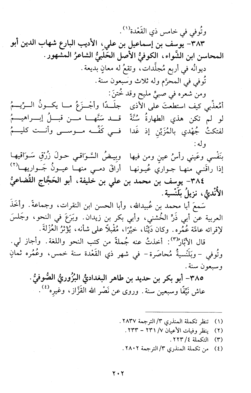 383 - يوسف بْن إِسْمَاعِيل بْن عَلِيّ، الأديبُ البارعُ شهابُ الدّين، أبو المحاسن ابن الشوّاء، الكوفيُّ الأصلِ الحَلَبيّ الشاعرُ المشهور. [المتوفى: 635 هـ]
