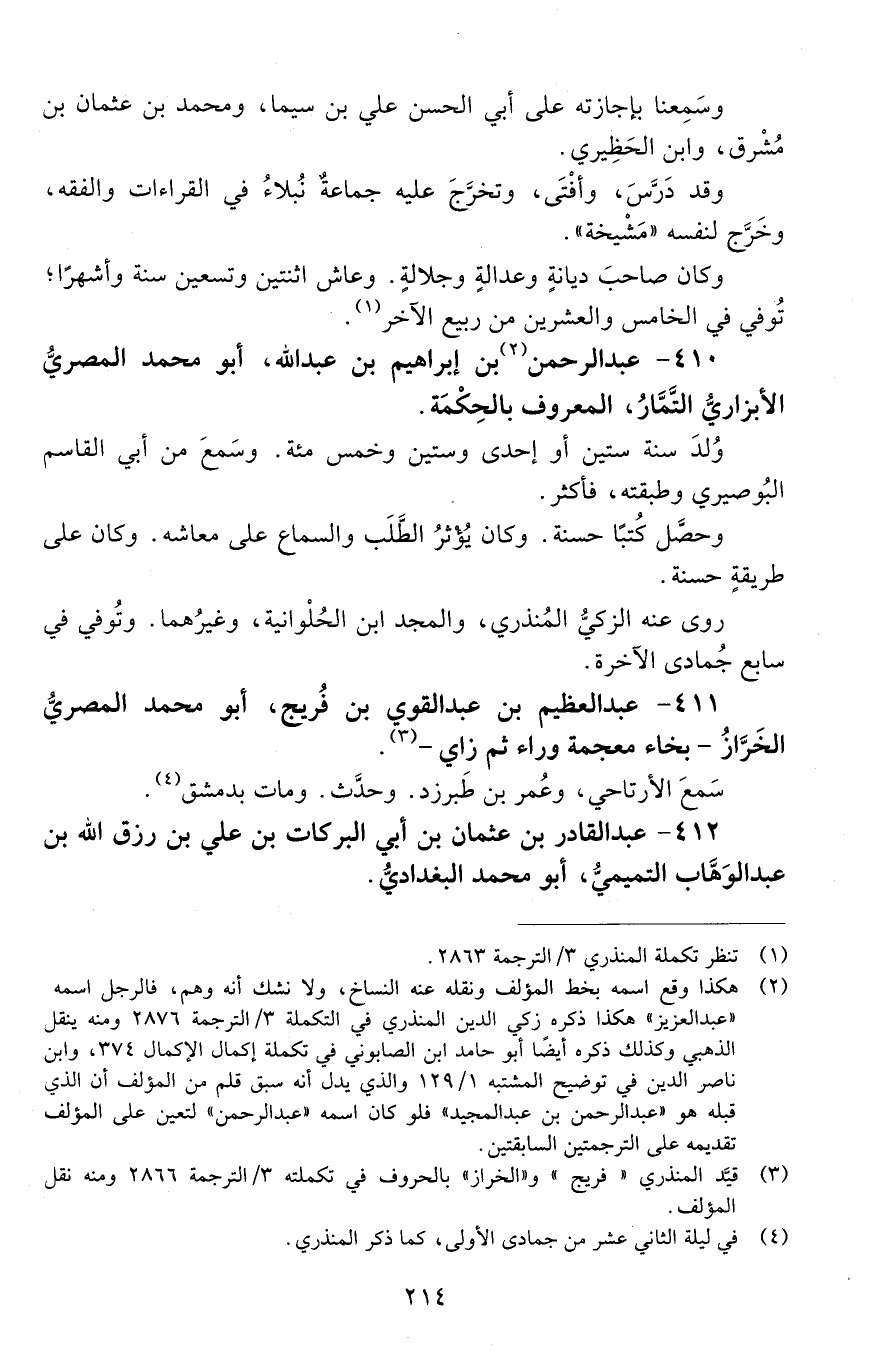 412 - عبدُ القادر بْن عثمان بْن أَبِي البركات بْن عَلِيّ بْن رزق اللَّه بْن عَبْد الوهاب التميميِّ، أَبُو مُحَمَّد البغدادي. [المتوفى: 636 هـ]-[215]-