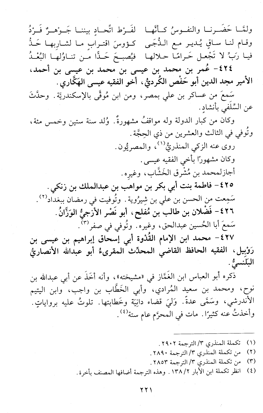 424 - عُمَر بن مُحَمَّد بن عيسى بن مُحَمَّد بن عيسى بن أَحْمَد، الأميرُ مجدُ الدّين أَبُو حفصٍ الكُرديُّ، [المتوفى: 636 هـ]