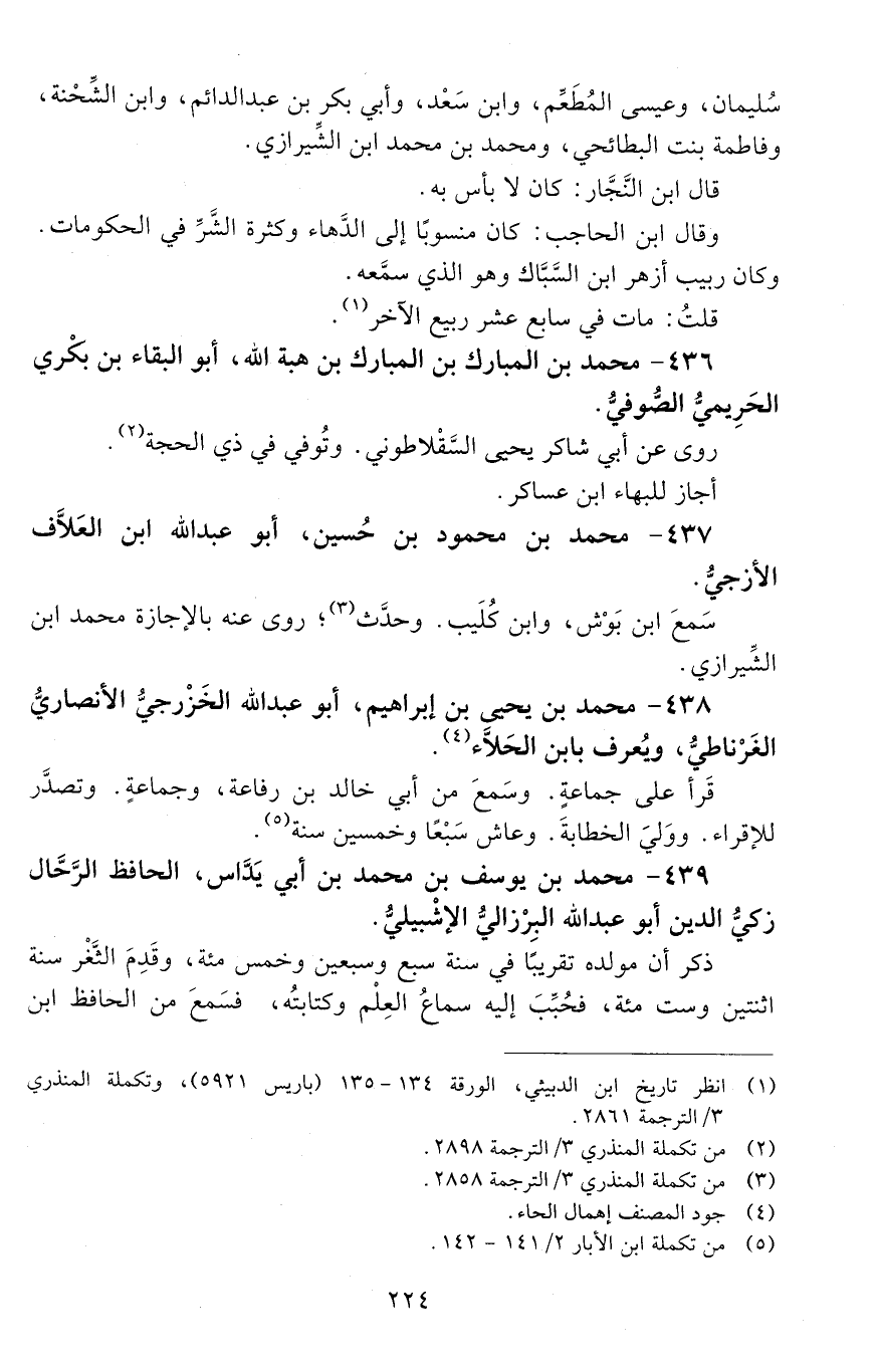 438 - مُحَمَّد بن يحيى بن إِبْرَاهِيم، أَبُو عَبْد اللَّه الخَزْرجيّ الأَنْصَارِيّ الغرناطي، ويُعرف بابنِ الحَلَّاء. [المتوفى: 636 هـ]