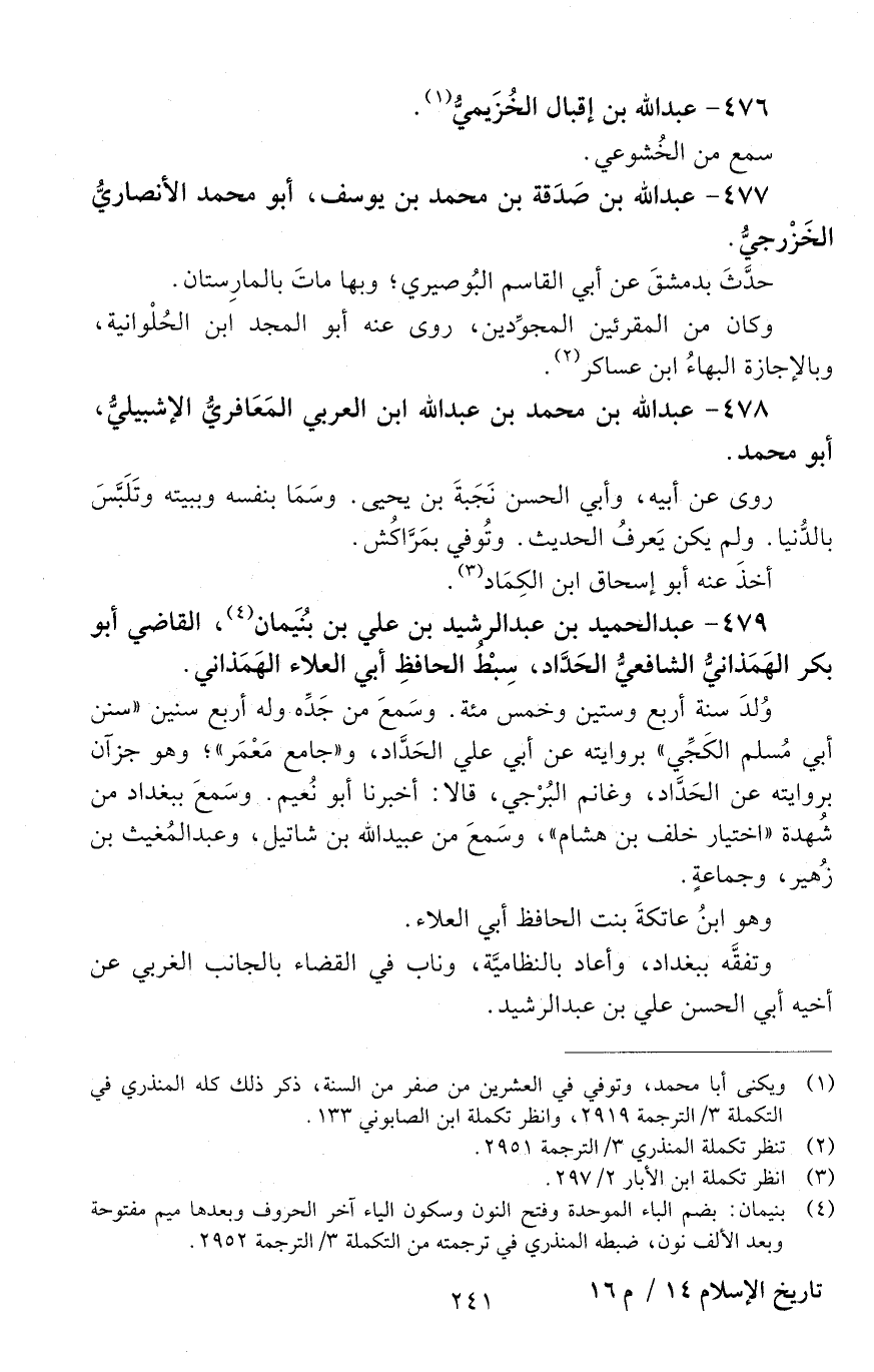 479 - عبدُ الحميدِ بْن عَبْد الرشيدِ بْن عَلِيّ بْن بُنَيْمان، القاضي أَبُو بكرٍ الهَمَذَانيّ الشّافعيّ الحدادُ، [المتوفى: 637 هـ]