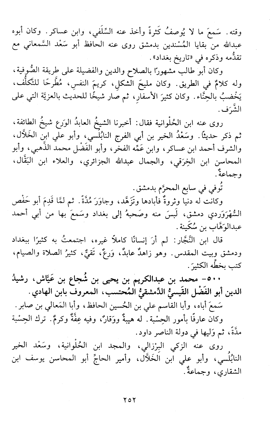 500 - مُحَمَّد بن عَبْد الكريم بْن يحيى بْن شُجاع بْن عَيَّاش، رشيدُ الدّين أَبُو الفضلِ القَيْسيُّ الدّمشقيّ المُحتسبُ، المعروف بابنِ الهادي. [المتوفى: 637 هـ]
