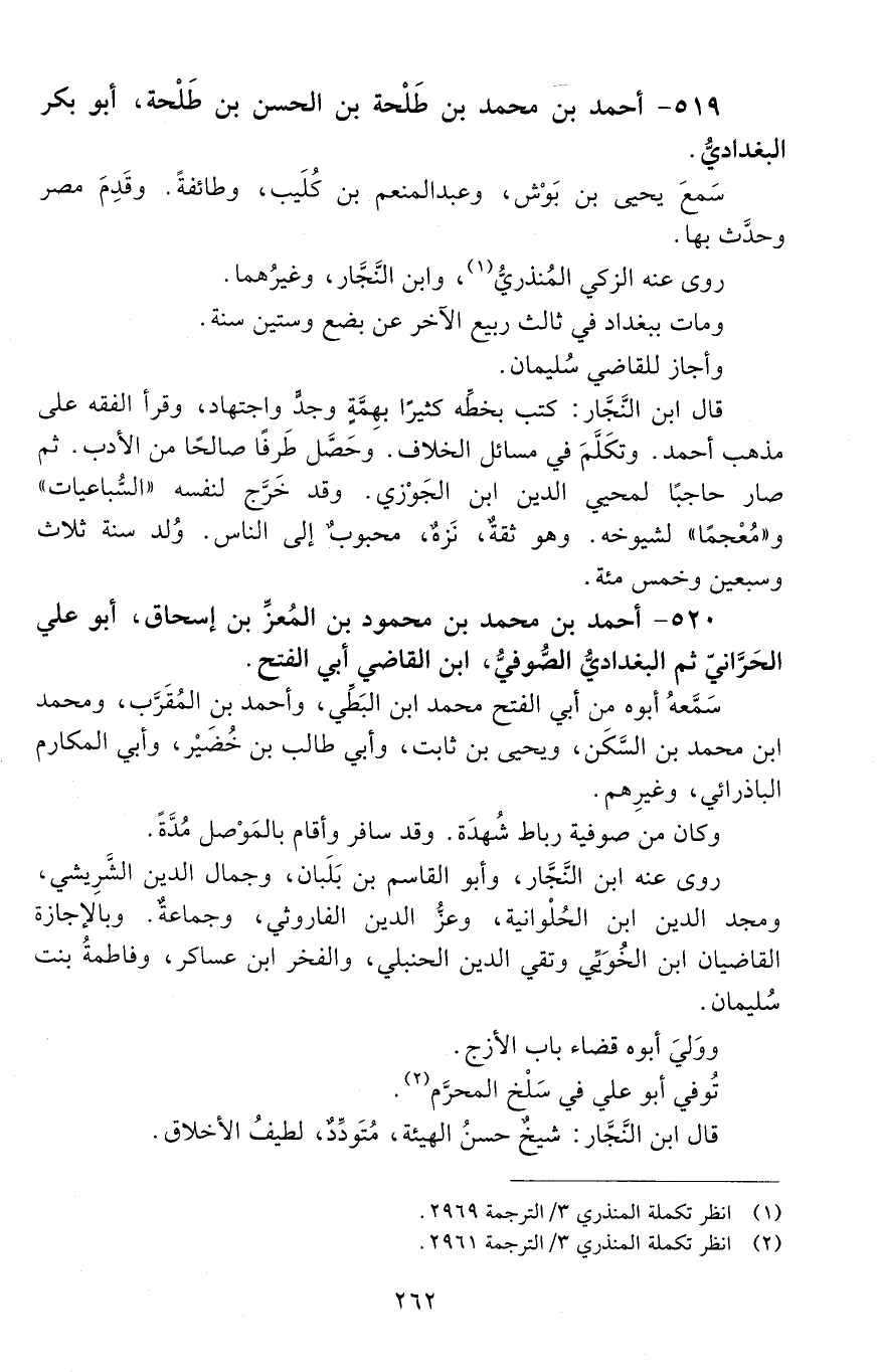 519 - أَحْمَد بن مُحَمَّد بن طلحة بن الْحَسَن بن طلحة، أَبُو بَكْر البغداديّ. [المتوفى: 638 هـ]