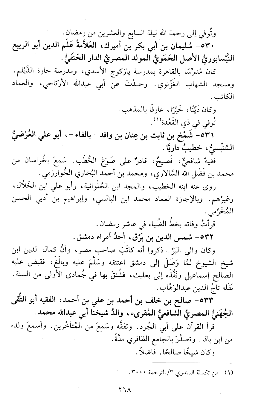 533 - صالحُ بْن خَلَف بْن أَحْمَد بْن عَلِيّ بن أَحْمَد، الفقيهُ، أَبُو التُّقَى الجهني، الْمَصْريّ، الشّافعيّ، المُقرئ، [المتوفى: 638 هـ]