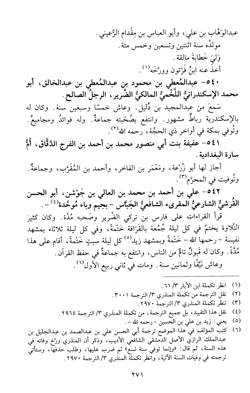 540 - عَبْد المُعطي بن محمود بن عبد المعُطي بن عَبْد الخالق. أَبُو مُحَمَّد الإسكندرانيّ اللَّخْميّ، المالكيّ، الضرير، الرجلُ الصّالح. [المتوفى: 638 هـ]