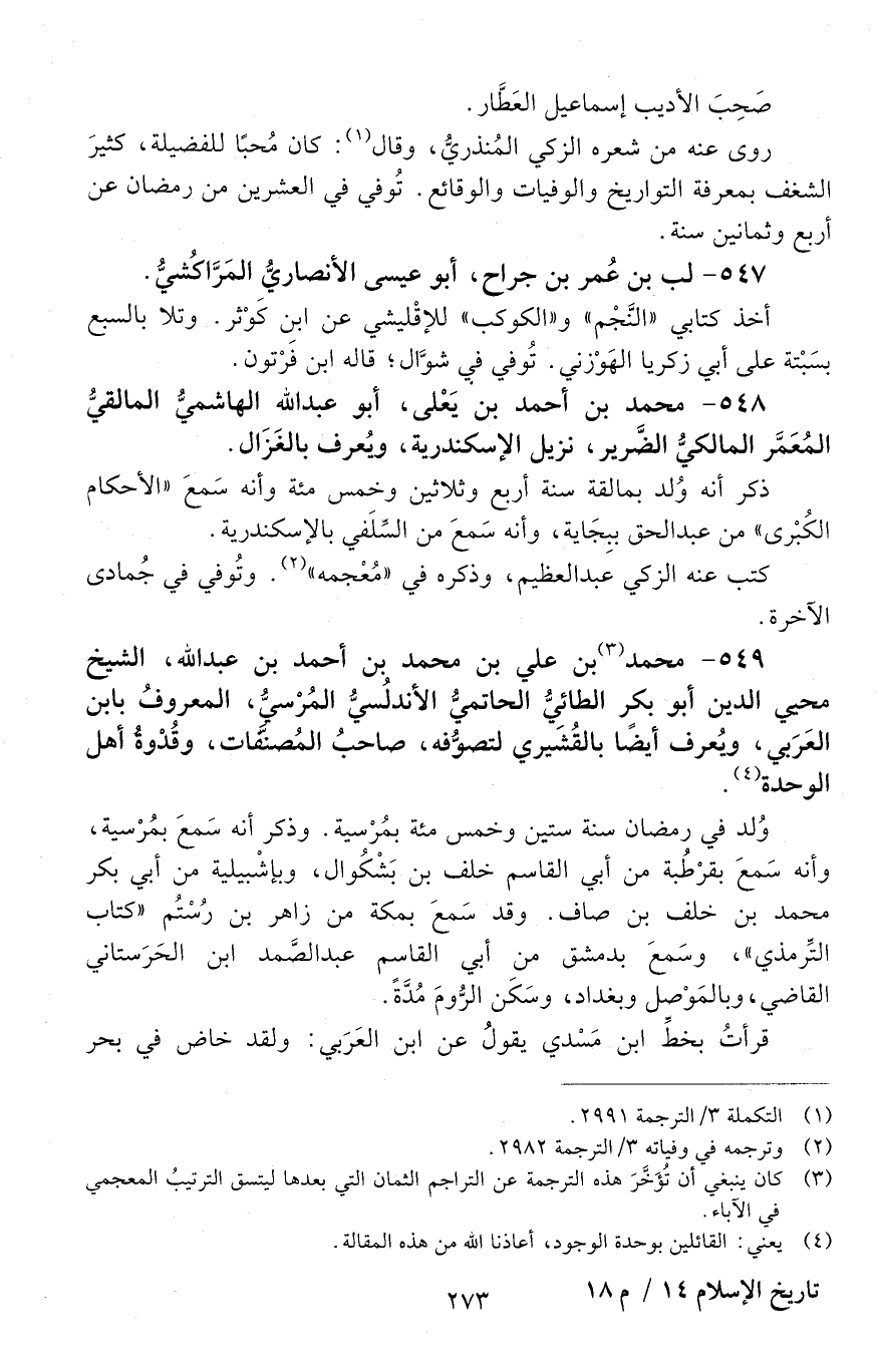 549 - مُحَمَّد بْنُ عليّ بْن مُحَمَّد بْن أَحْمَد بْن عَبْد اللَّه. الشيخُ، محيي الدّين، أَبُو بَكْر، الطائيُّ، الحاتميُّ، الأندلُسيّ، المُرْسيُّ، المعروف بابن العَرَبيّ. ويعرف أيضًا بالقُشَيريّ [المتوفى: 638 هـ]