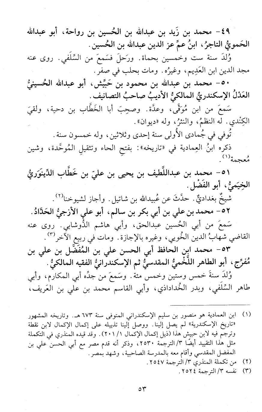 49 - مُحَمَّدِ بْنِ زَيْدِ بْن عَبْد اللَّه بْن الْحُسَيْن بْن رَوَاحَة، أَبُو عَبْد اللَّه الحَمَويُّ التاجرُ، [المتوفى: 631 هـ]