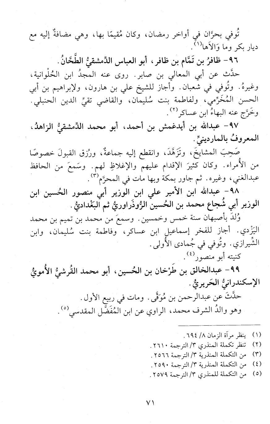 96 - ظافرُ بْن تَمَّام بْن ظافر، أَبُو الْعَبَّاس الدّمشقيّ الطّحّانُ. [المتوفى: 632 هـ]