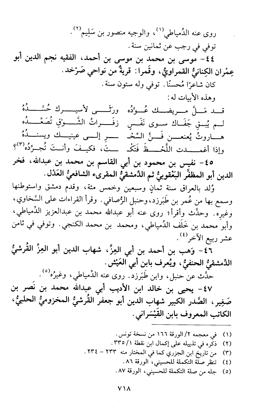 45 - نفيس بن محمود بن أَبِي القاسم بن محمد بن عُبد الله، فخرُ الدين، أَبُو المظفِّر البعقوبي، ثم الدمشقي المقرئ، الشافعي العدل. [المتوفى: 651 هـ]