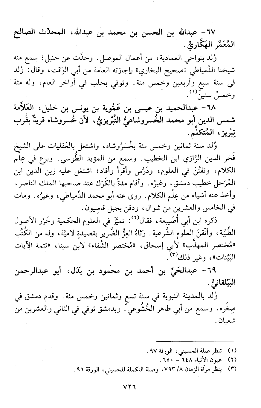 68 - عَبْد الحميد بن عيسى بن عَمُّوَيْه بن يونس بن خليل، العلامة شمسُ الدين، أَبُو مُحَمَّد الخُسْروشاهيّ، التِّبْريزيّ، لأن خُسْروشاه قرية بقُرب تبريز، المتكلّم. [المتوفى: 652 هـ]