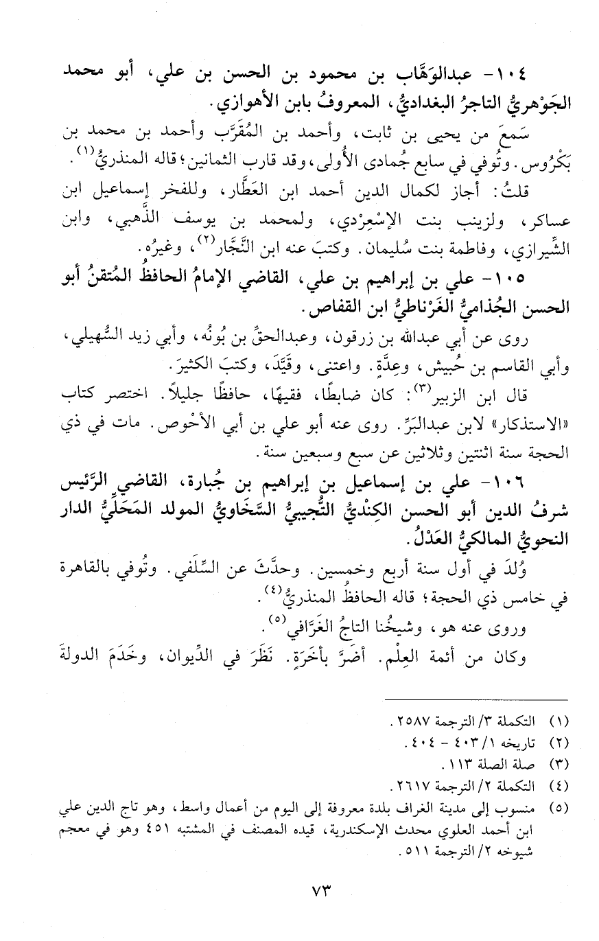 105 - عَلِيّ بْن إِبْرَاهِيم بْن عَلِيّ، القاضي الإمامُ الحافظُ المتقِنُ أَبُو الْحَسَن الْجُذاميُّ الغَرْناطيُّ ابن القفاص. [المتوفى: 632 هـ]
