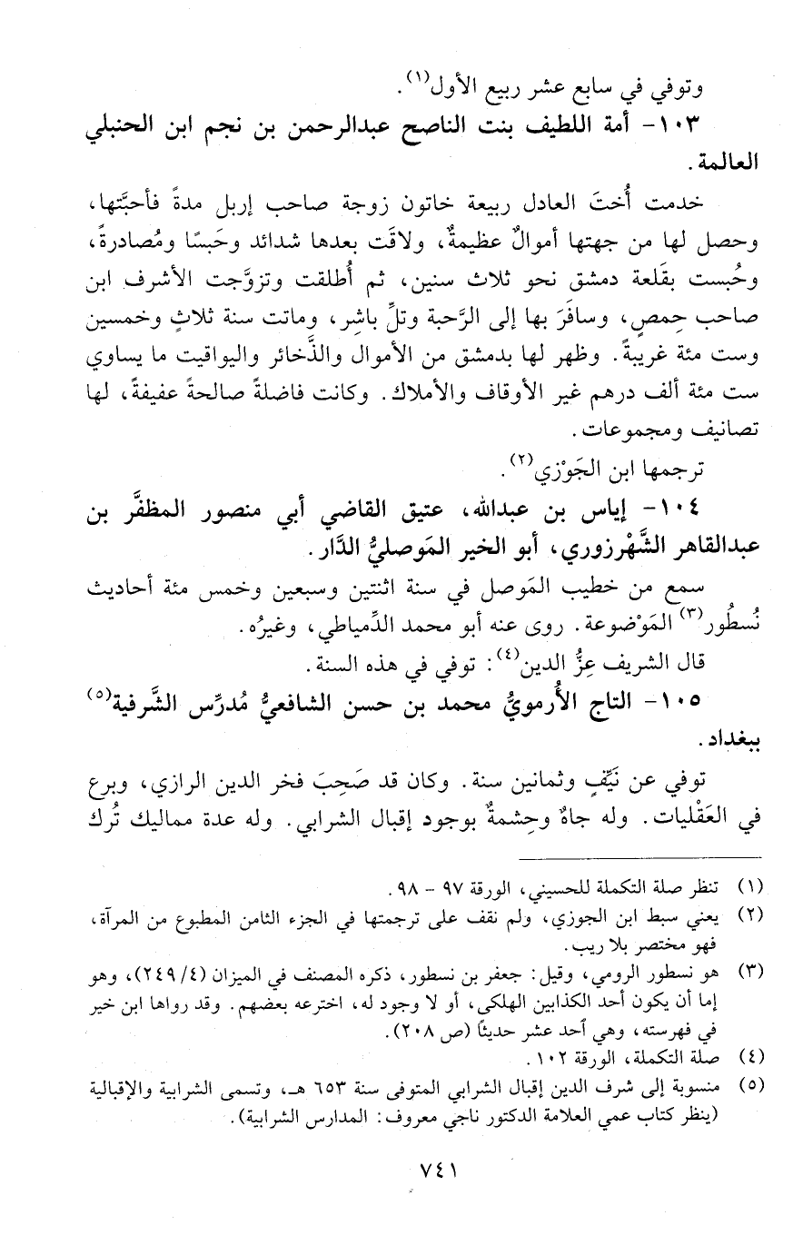 103 - أمَة اللطيف بِنْت الناصح عَبْد الرحمن بن نجم ابن الحنبلي، العالمة. [المتوفى: 653 هـ]