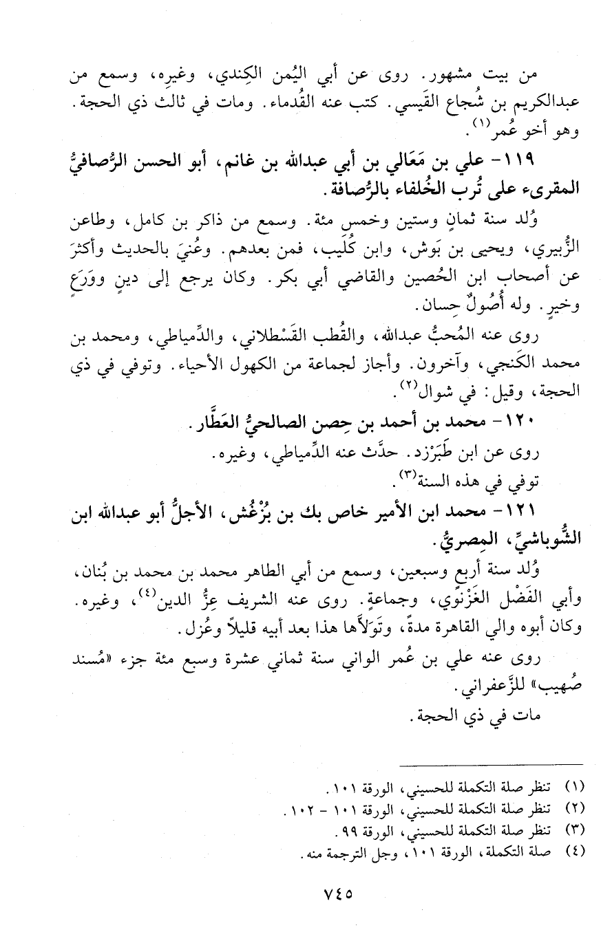 119 - علي بن معالي بن أَبِي عَبْد الله بن غانم، أَبُو الْحَسَن الرصافي، المقرئ على تُرب الخلفاء بالرُّصافة. [المتوفى: 653 هـ]