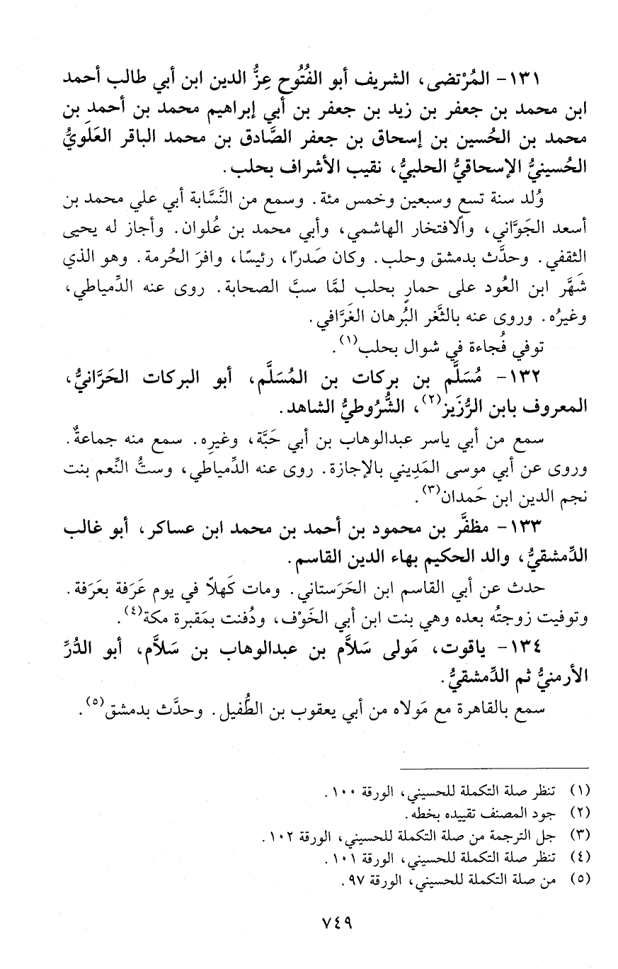 131 - المُرْتضى الشّريف، أبو الفُتُوح، عزّ الدّين ابن أَبِي طَالِب أَحْمَد بن مُحَمَّد بن جَعْفَر بن زيد بن جَعْفَر بن أَبِي إِبْرَاهِيم مُحَمَّد بْن أَحْمَد بْن مُحَمَّد بْن الْحُسَيْن بن إسحاق بن جعفر الصادق بن محمد الباقِر العَلَويّ، الحُسَيْنِيّ، الإسحاقي، الحلبي، [المتوفى: 653 هـ]
