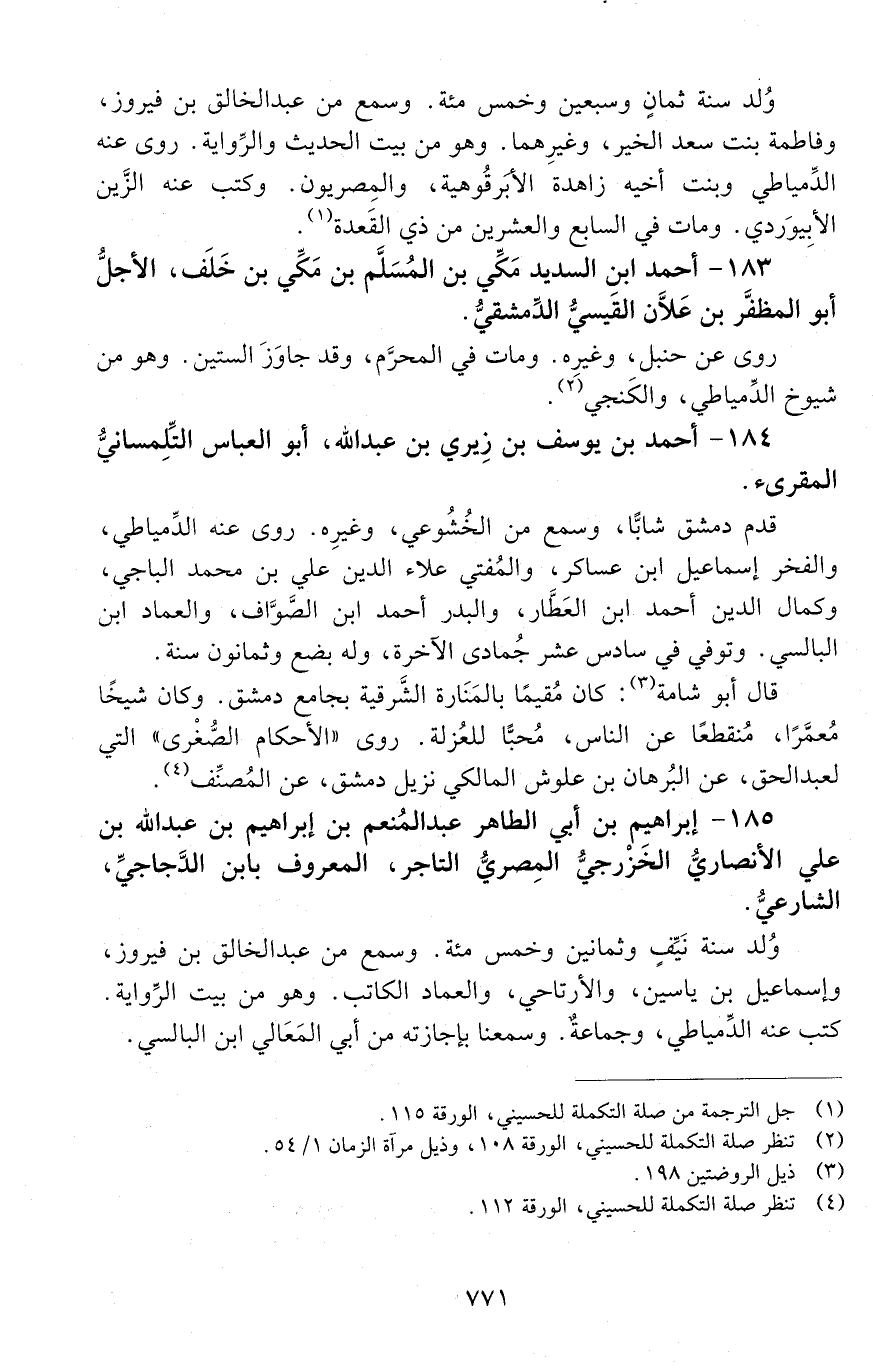 183 - أحمد ابن السديد مكي بن المسلَّم بن مكي بن خَلَف، الأجل، أَبُو المظفر بن علان القيْسي، الدمشقي. [المتوفى: 655 هـ]