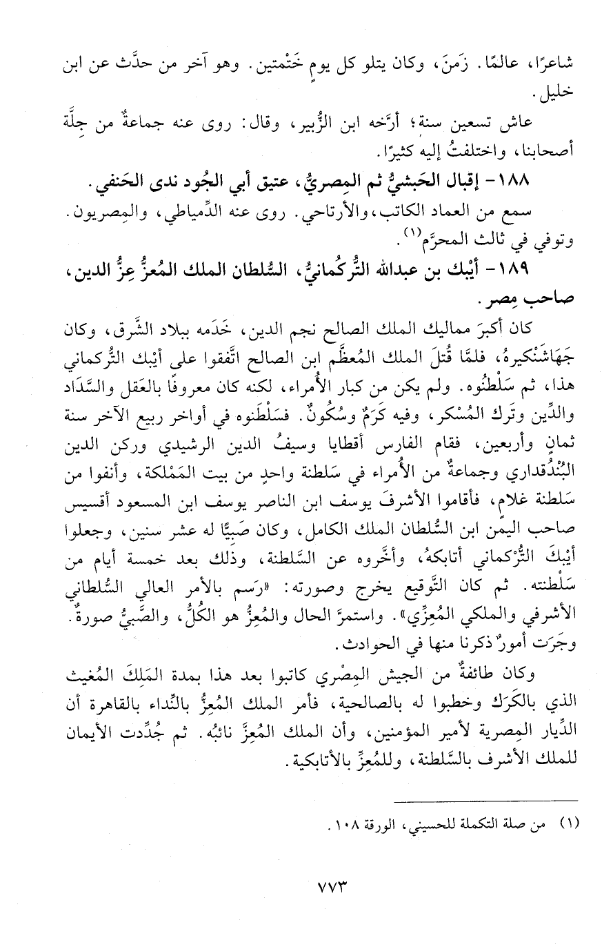 189 - أيْبك بن عَبْد الله التُّركُماني، السُّلطان الملك المُعزّ عز الدين، [المتوفى: 655 هـ]