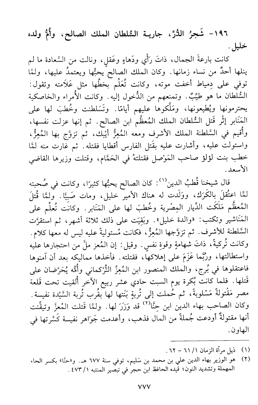 196 - شجرُ الدُّرّ، جارية السُّلطان الملك الصالح، وأم ولده خليل. [المتوفى: 655 هـ]