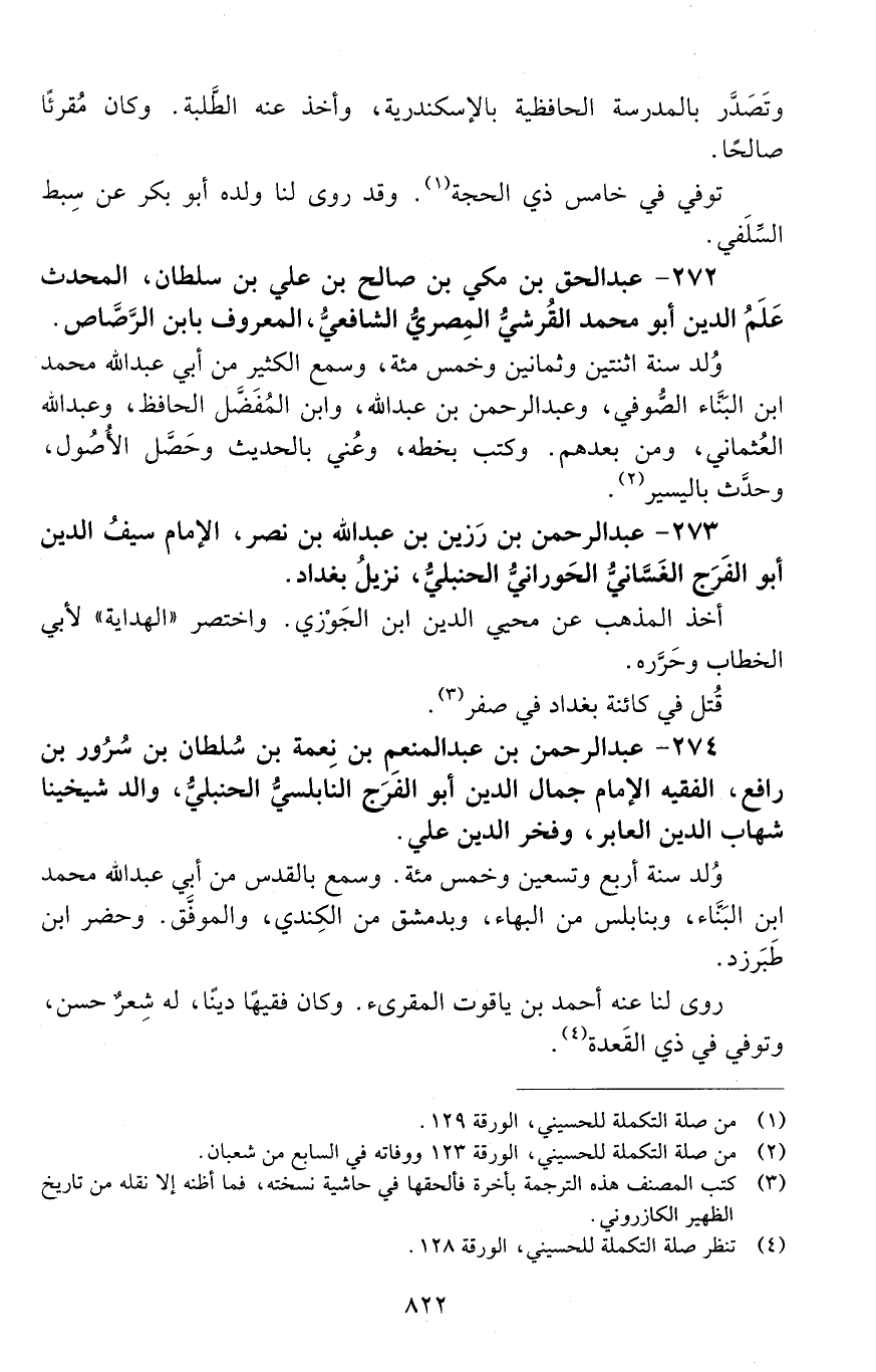 272 - عَبْد الحق بْن مكّيّ بْن صالح بْن عليّ بْن سلطان، المحدث عَلَمُ الدين، أبو محمد القُرشي، الْمَصْرِيّ، الشّافعيّ، المعروف بابن الرصاص. [المتوفى: 656 هـ]