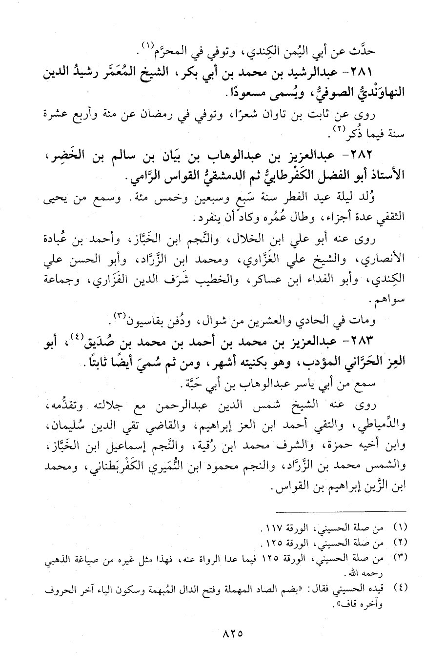 282 - عَبْد العزيز بْن عَبْد الوهّاب بْن بيان بْن سالم بْن الخَضِر، الأستاذ أبو الفَضْلِ الكفْرطابي، ثُمَّ الدّمشقيّ، القواس، الرامي. [المتوفى: 656 هـ]