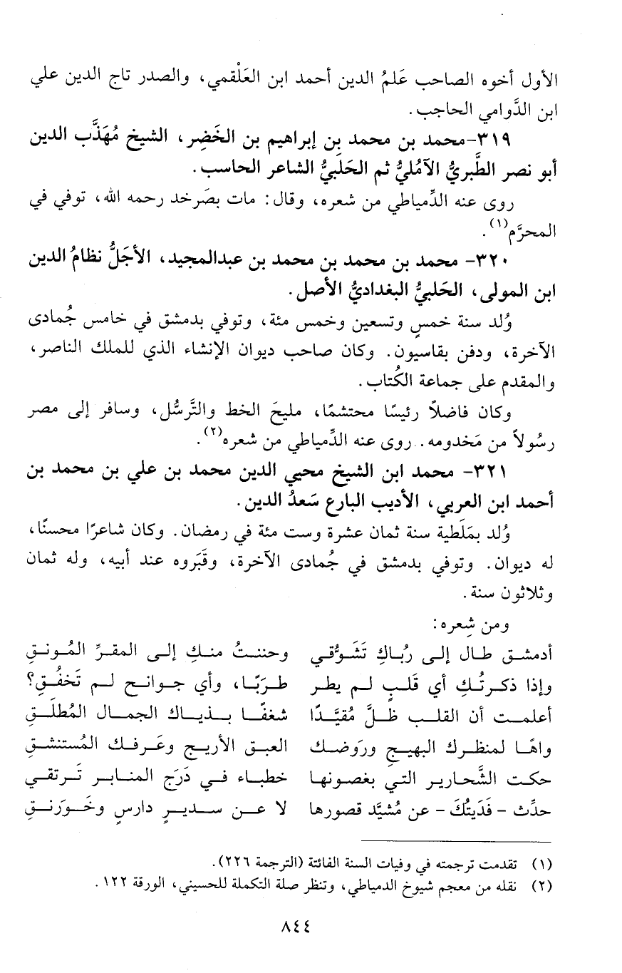 319 - محمد بْن محمد بْن إبراهيم بْن الخضِر الشيخ مهذَّب الدين، أبو نصر الطَّبريّ، الآمُليّ، ثُمَّ الحلبي، الشّاعر، الحاسب. [المتوفى: 656 هـ]