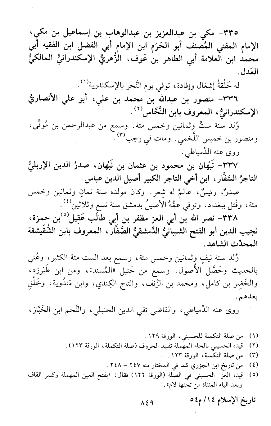 336 - منصور بْن عَبْد اللَّه بْن مُحَمَّد بْن عَلي، أبو عليّ الأنصاري الإسكندراني، المعروف بابن النحاس. [المتوفى: 656 هـ]
