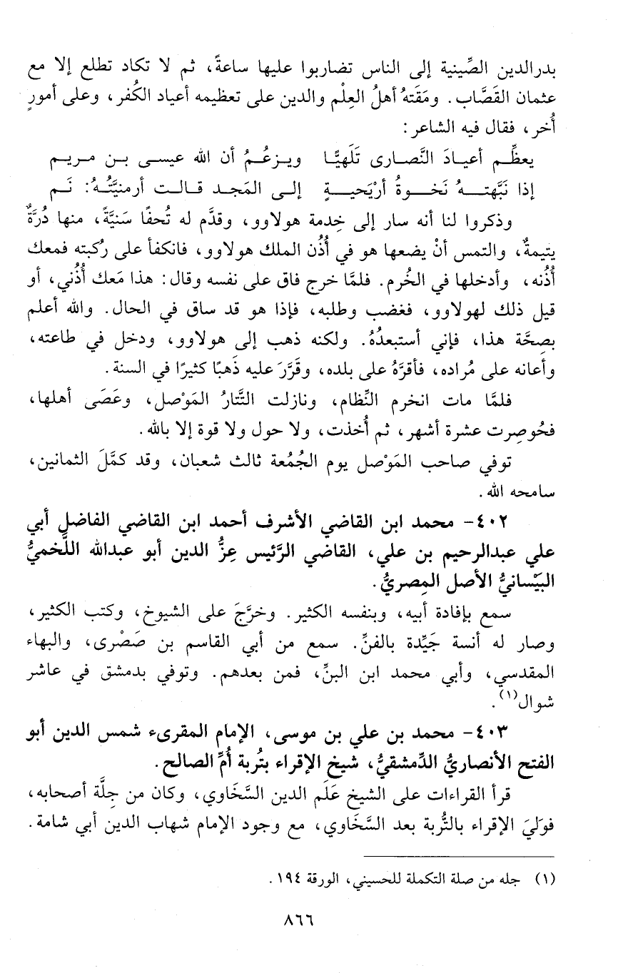 403 - مُحَمَّد بن علي بن موسى الإمام المقرئ، شمس الدين، أبو الفتح الأنصاريّ، الدّمشقيّ، [المتوفى: 657 هـ]