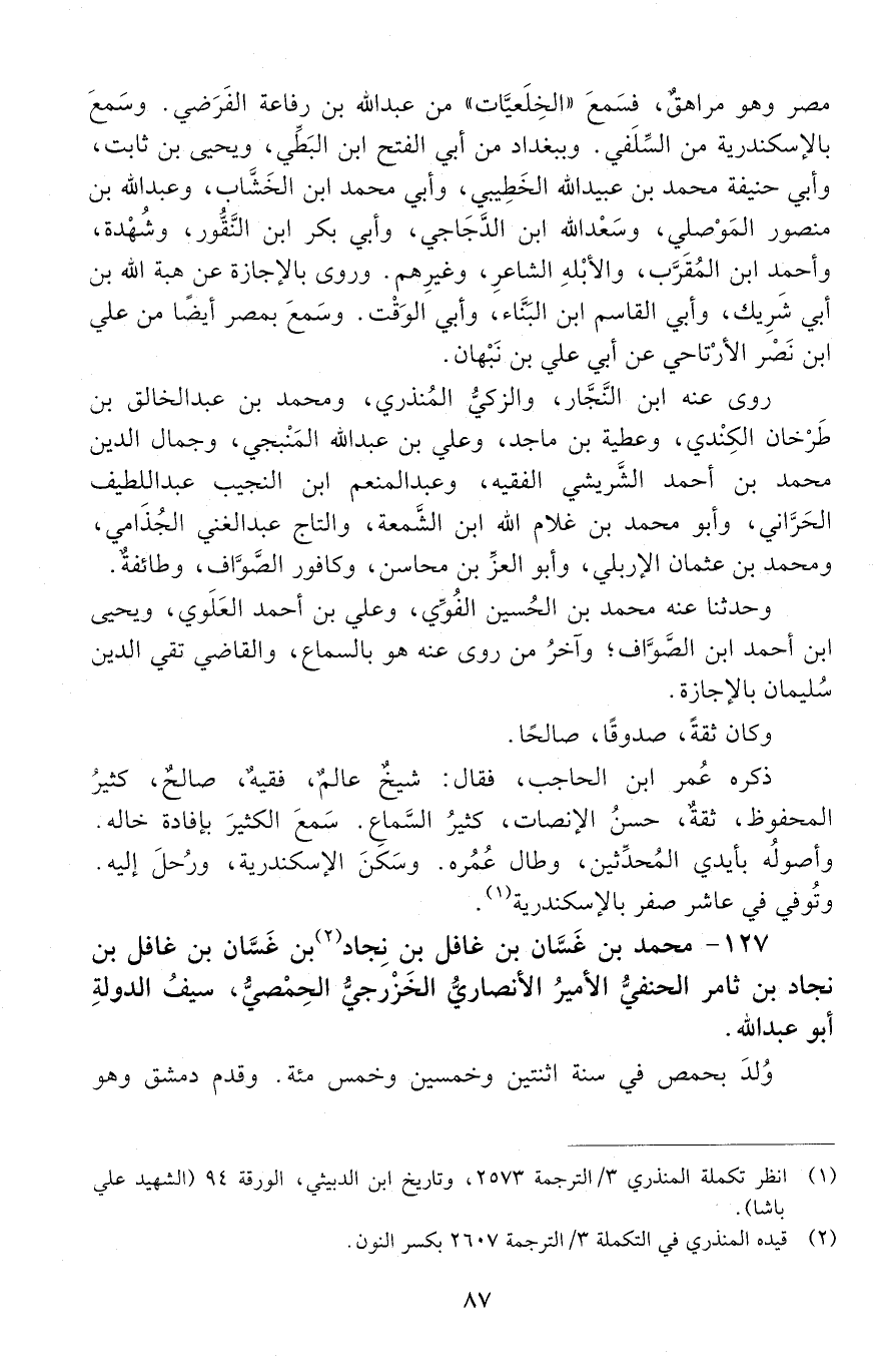 127 - مُحَمَّد بْن غَسَّان بْن غافل بْن نجاد بْن غَسَّان بْن غافِل بْن نجاد بْن ثامر الحنفيُّ الأميرُ الأَنْصَارِيّ الخزرجيُّ الحمصيُّ سيف الدولة أَبُو عَبْد اللَّه. [المتوفى: 632 هـ]