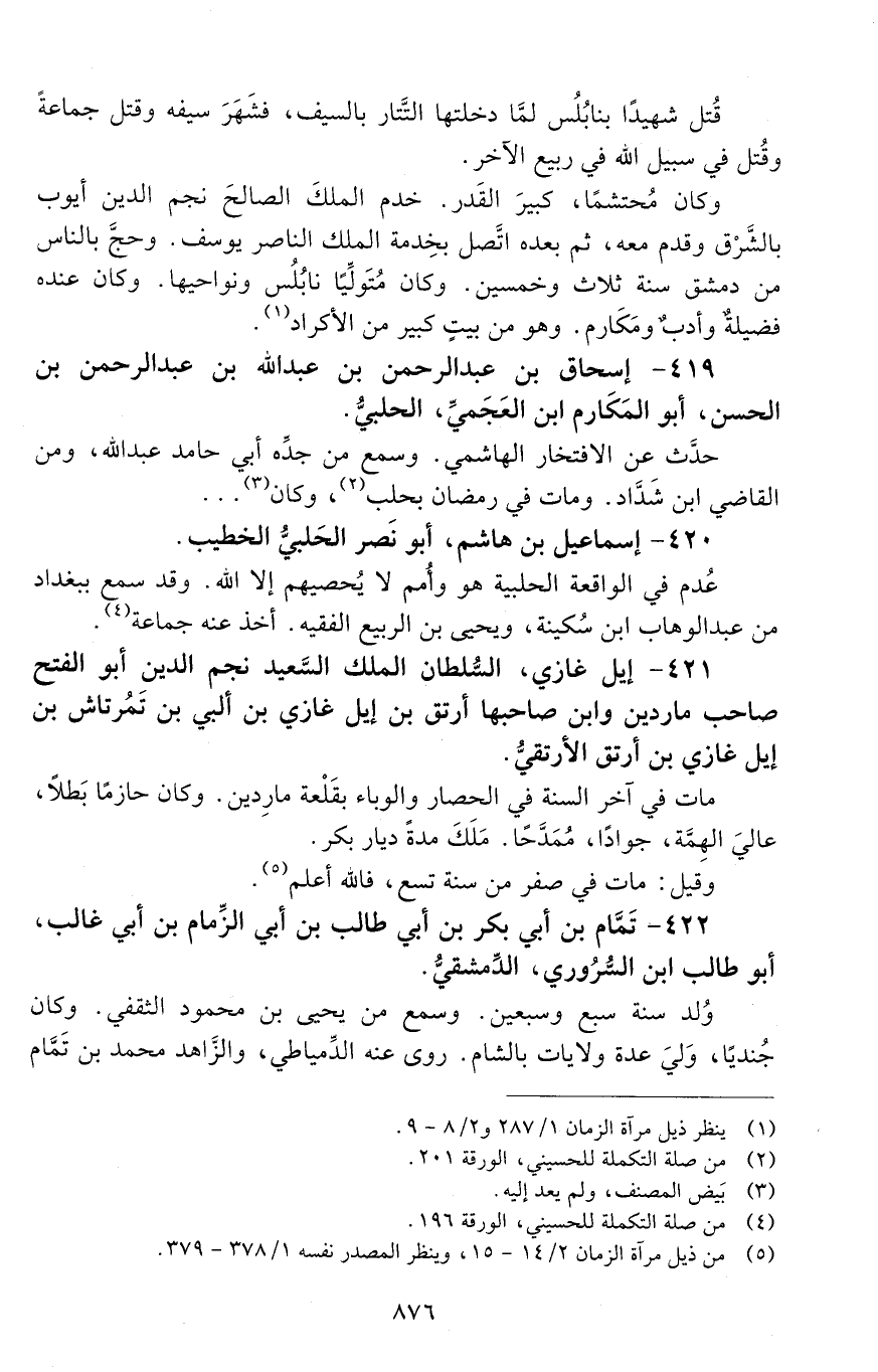 419 - إِسْحَاق بْن عَبْد الرَّحْمَن بْن عَبْد اللَّه بْن عَبْد الرَّحْمَن بْن الحَسَن، أبو المكارم ابن العجمي، الحلبي. [المتوفى: 658 هـ]
