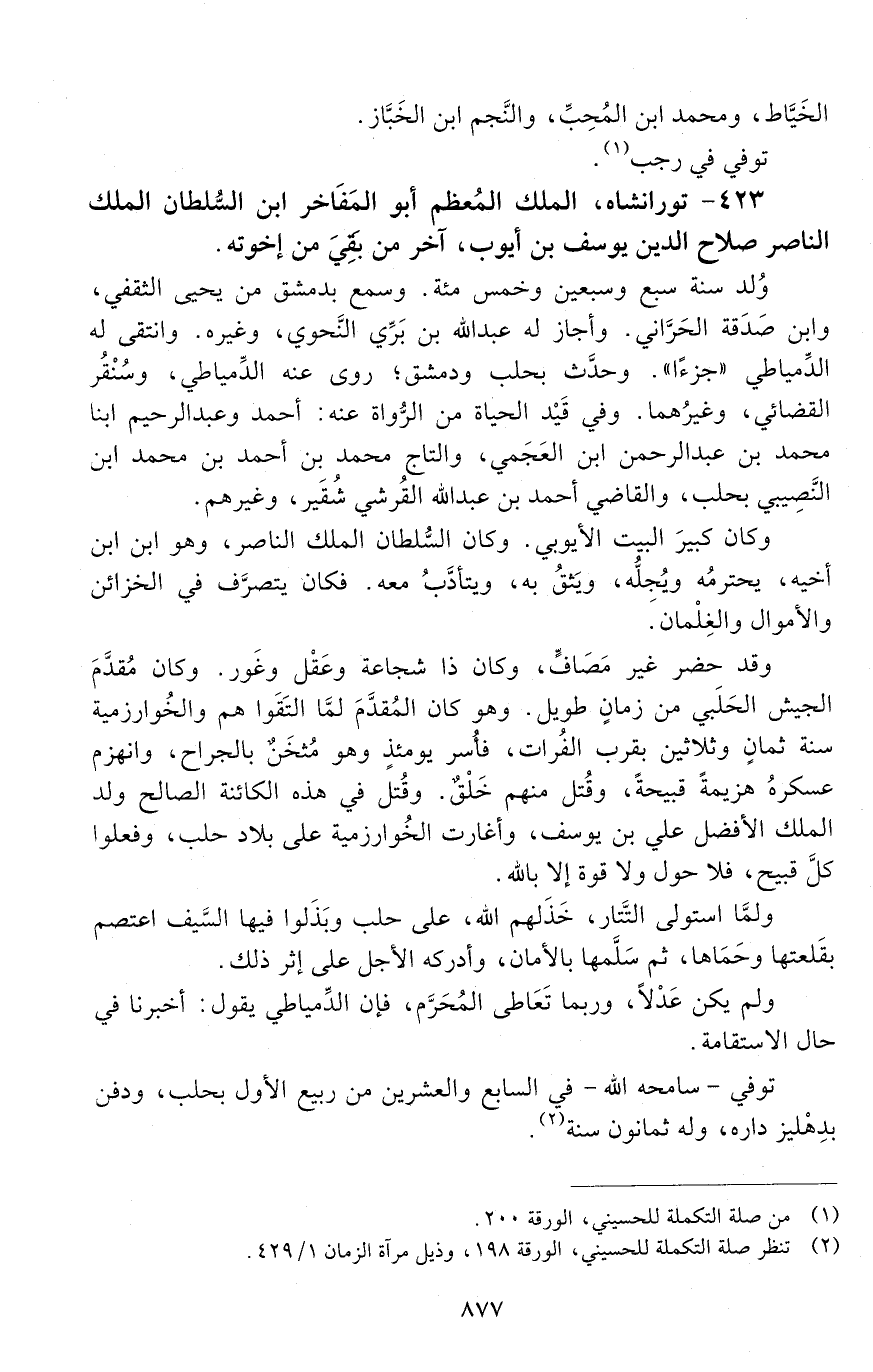 423 - تورانشاه، المُلْك المعظَّم أبو المفاخر ابن السُّلطان المُلْك النّاصر صلاح الدين يوسف بْن أيّوب. [المتوفى: 658 هـ]